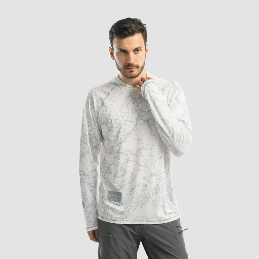 Джерси с капюшоном. Защита от ультрафиолета UPF 50+. Плоские швы. Комфортный крой изделия сохранит полную свободу ваших движений даже при самой высокой активности. Особенностями ткани является - износостойкость, гигиеничность, эластичность, а так же низкий коэффициент удержания влаги, ткань сохнет практически моментально. Благодаря низкой плотности вес изделия минимален. Шлевка под средний палец.
