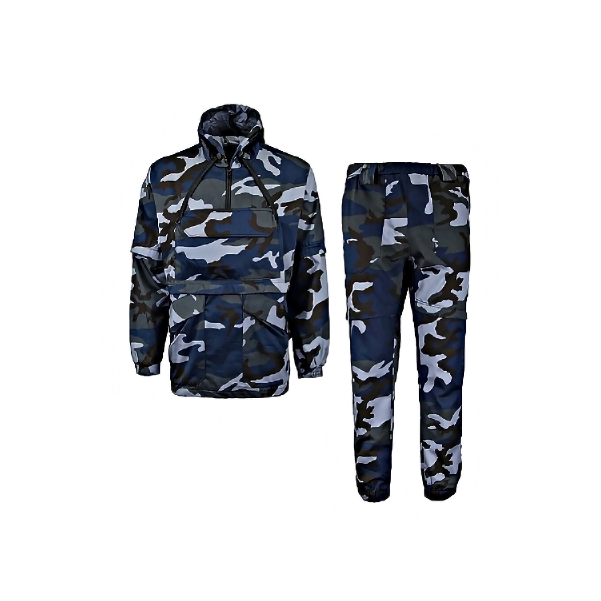 Состоит костюм из куртки-анорак с капюшоном и брюк прямого кроя. Капюшон регулируется по объему, а съемная вставка из противомоскитной сетки застегивается на молнию, или убирается в карман на груди. Костюм оснащен специальными ловушками для клещей – на рукавах, куртке, брюках. Пояс брюк собран на широкую эластичную резинку, есть шлевки для ремня. Низ брюк на резинке.
