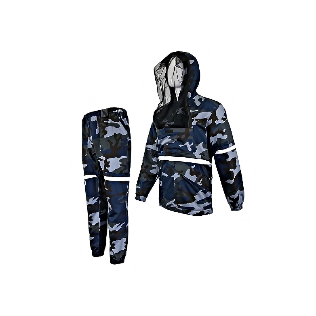 Состоит костюм из куртки-анорак с капюшоном и брюк прямого кроя. Капюшон регулируется по объему, а съемная вставка из противомоскитной сетки застегивается на молнию, или убирается в карман на груди. Костюм оснащен специальными ловушками для клещей – на рукавах, куртке, брюках. Пояс брюк собран на широкую эластичную резинку, есть шлевки для ремня. Низ брюк на резинке.