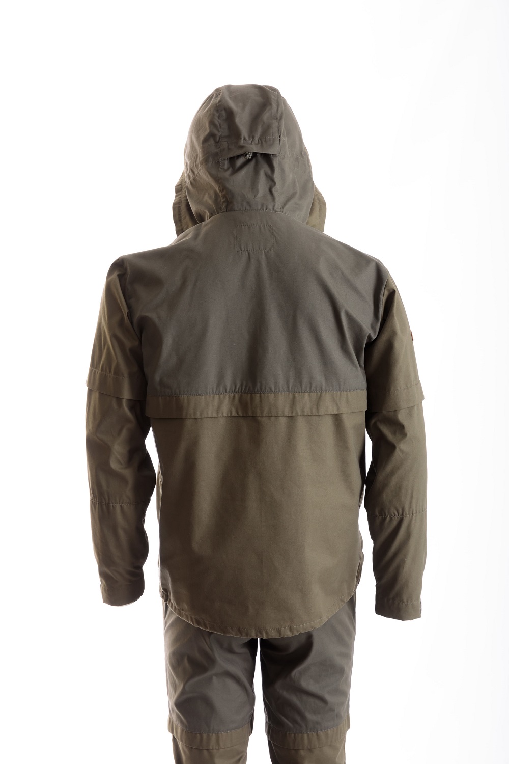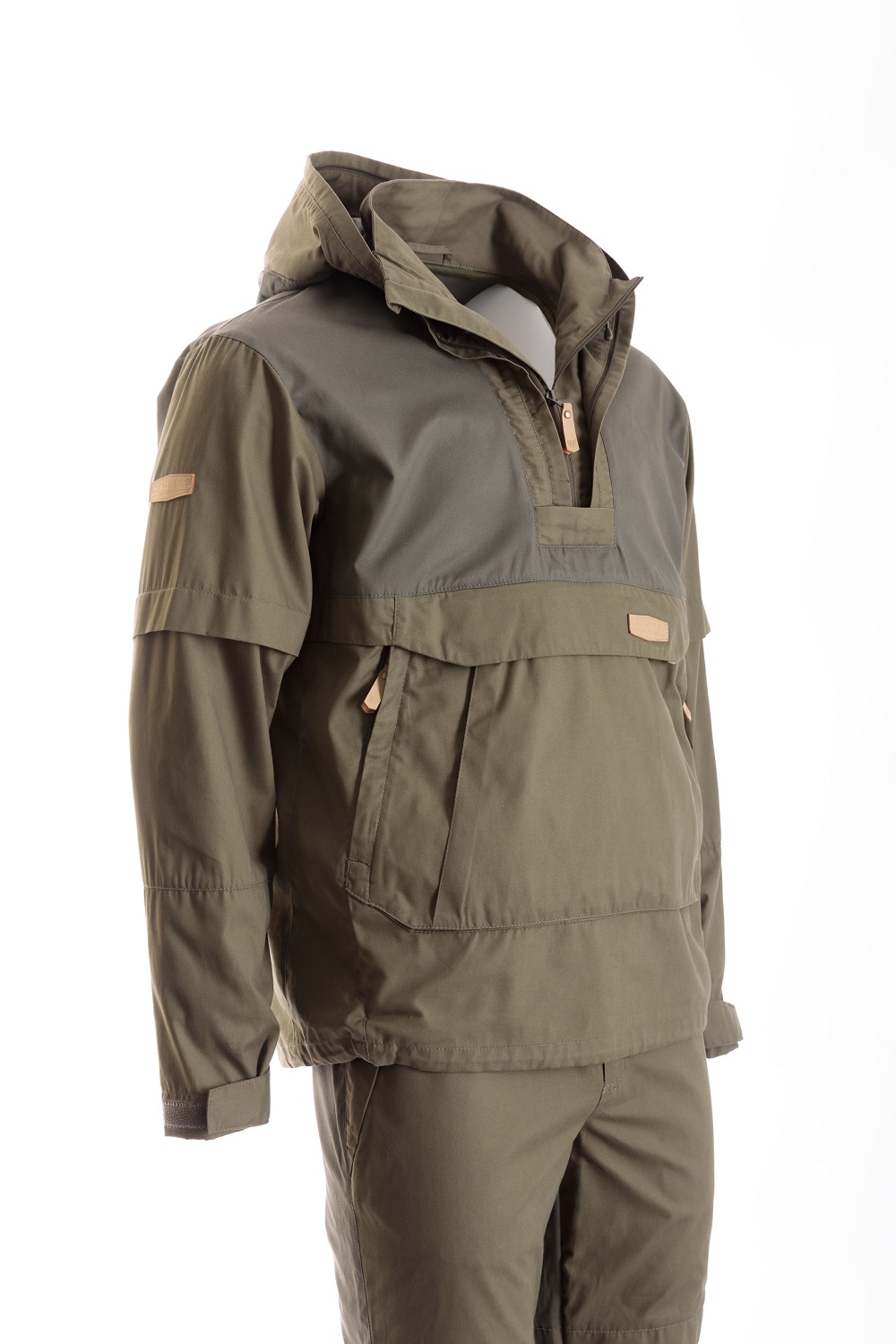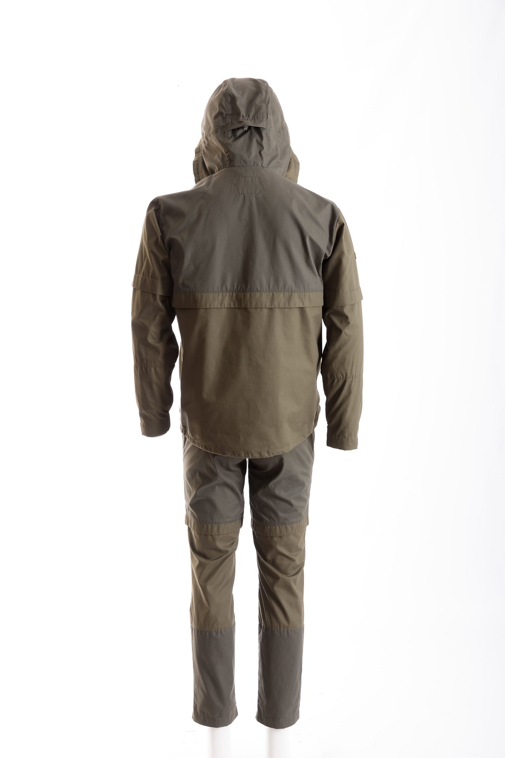 Костюм имеет внушительный набор средств механической защиты: складки-ловушки на куртке и брюках, полностью съемная москитная сетка, противоэнцефалитная "юбка" и плотные манжеты на куртке и брюках.