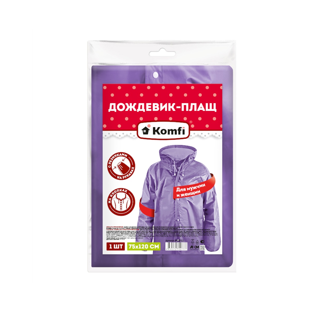 Дождевик-плащ Komfi на кнопках, рукава на резинках 75х120см (EVA) фиолетовый (EVAF12)