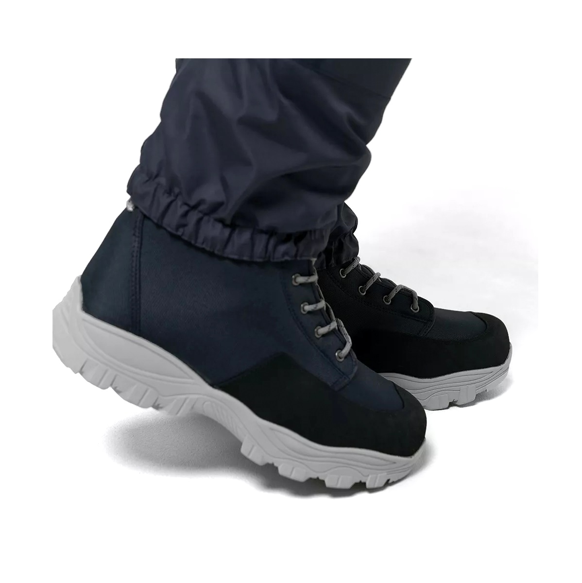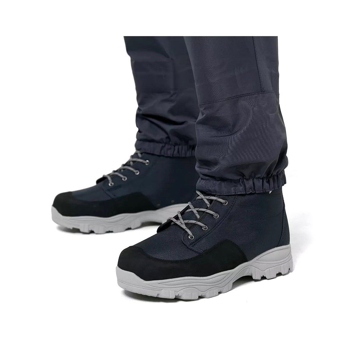 Износостойкий синтетический материал надёжно защищает от влаги и сохраняет тепло. Специальное плетение OXFORD увеличивает срок службы ботинок и защищает от внешней среды. Дополнительный усиленный материал в районе голеностопа предотвращает травмы и растяжения, обеспечивая максимальный комфорт и безопасность. Подошва сконструирована таким образом, чтобы грязь и песок не забивались в рисунок протектора. Ботинки в городском стиле сочетают в себе удобные и функциональные элементы, а также имеют оригинальную серую расцветку. Чтобы удалить жидкость из обуви, достаточно надавить ступнёй внутри ботинка. Под действием давления лишняя вода выйдет наружу через специальные дренажные отверстия.