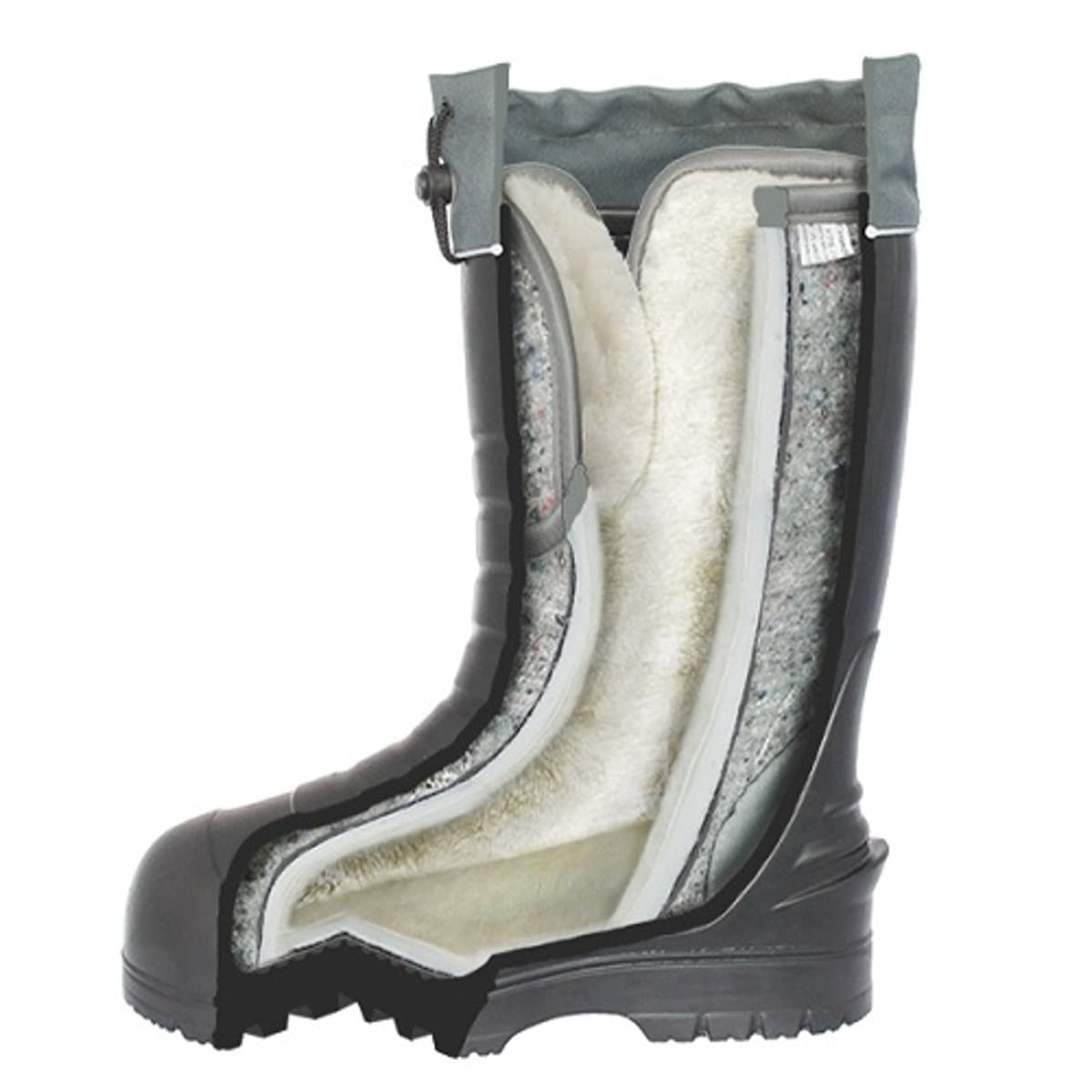 Сами сапоги изготовлены из полимера - вспененного этиленвинилацетата, который из-за своей пористой структуры, состоящей из множества микроскопических пузырьков воздуха, обладает рядом отличительных свойств, подходящих для зимней резиновой обуви: