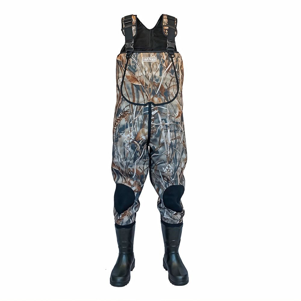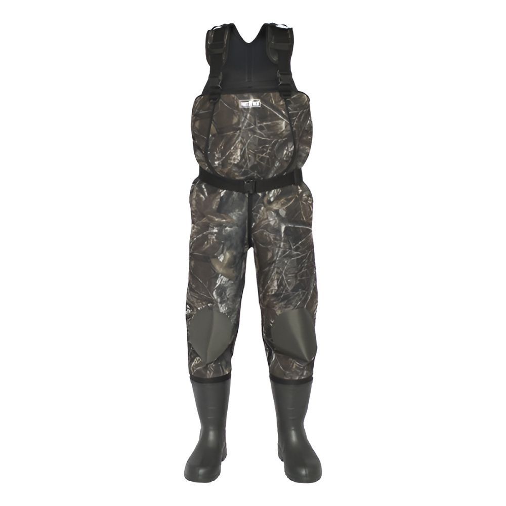 Полукомбинезон изготовлен из неопрена камуфлированных расцветок. Запатентованные расцветки "TeclWood" прекрасно маскируются под пестрый фон леса или камыша.