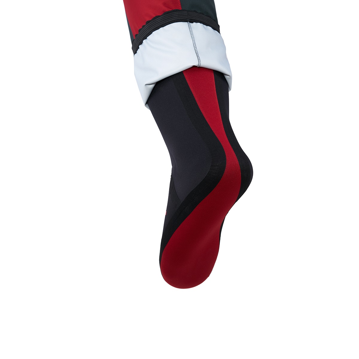 Артикулированный крой обеспечивает полную свободу движений, а эластичный пояс и подтяжки легко отрегулируют вейдерсы по фигуре. Низ брюк плотно прилегает к ноге и не поднимается, благодаря резинке и крючку для крепления к ботинку, а также возможности дополнительно отрегулировать натяжение штанин.
