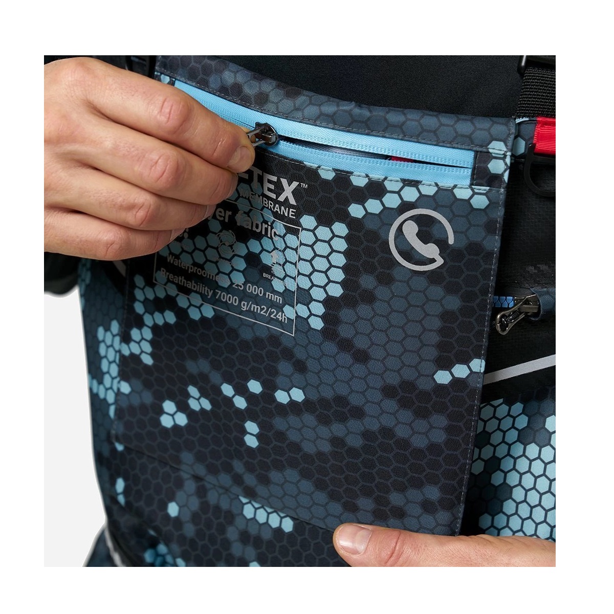 на 100% защищает от воды и ветра. Прочная ткань сохраняет максимальный комфорт в течение 24 часов под проливным дождём. Грязе-водооталкивающее покрытие Teflon предотвращает впитывание вязкой грязи, не оставляя на ткани следов и разводов. Интегрированный материал Cordura повышает износостойкость вейдерсов в районе колен, голени и седалища. Модель отличает оригинальная расцветка с элементами светло-серого камуфляжа и функциональный дизайн, в котором продумана каждая деталь.
