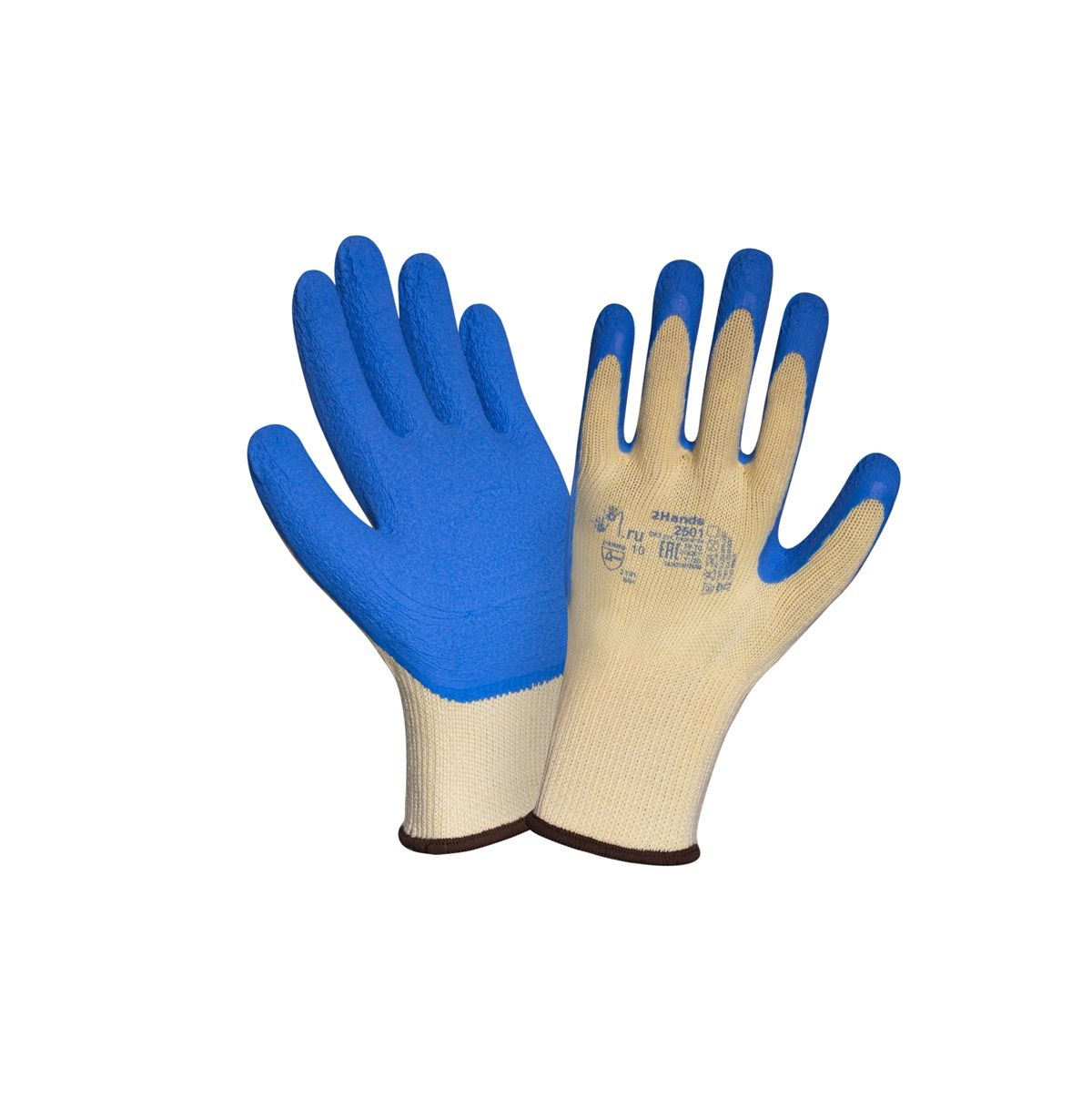 Перчатки 2Hands S-Comfort 2501 полиэфир-хлопок 10G, частичное покрытие ладони и пальцев вспененным латексом Microfoam и ребристой поверхность р.10