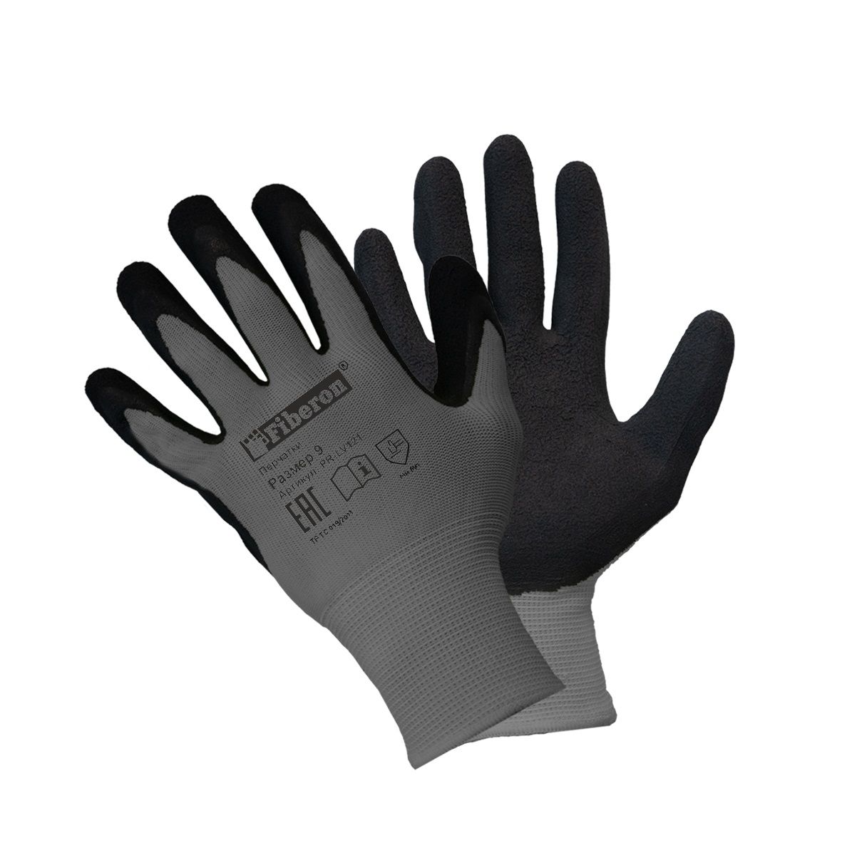 Перчатки Fiberon PR-LV121 Графит, полиэстер, покрыты вспененным латексом р.L