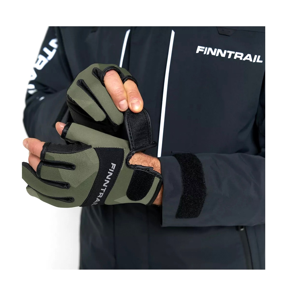 Перчатки Finntrail Neosensor CamoShadowGreen 2730 без 3-х пальцев (неопрен,низ-искусственная кожа) р.M КМФ темно-зеленые