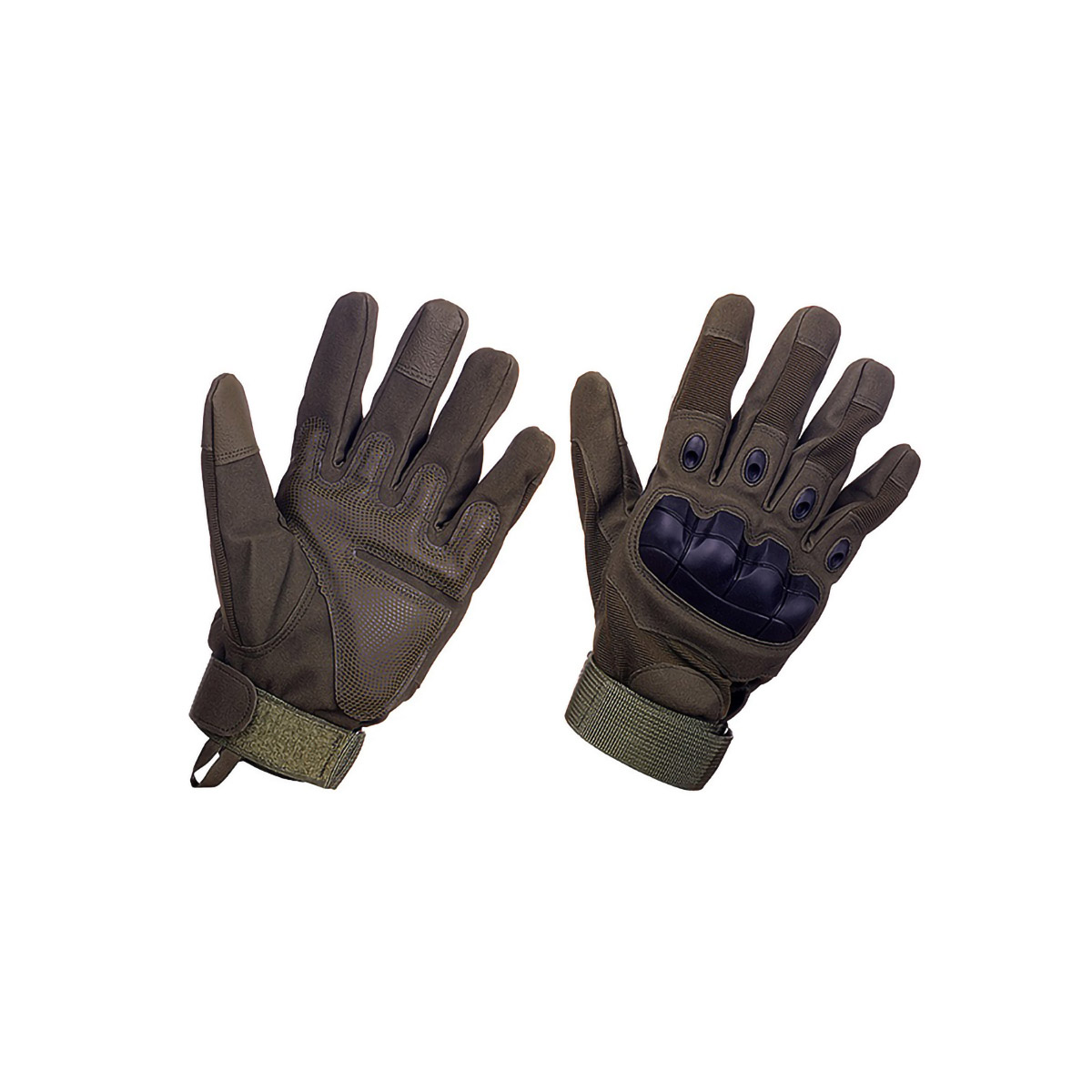 На внешней стороне перчаток расположена пластиковая защита - специальные вставки из эластичного пластика, которые обеспечивают защиту суставов при ударах или падении, и при этом оставляют пальцам высокую подвижность. Также, смягчающие вставки имеются и на ладони. Эргономичное расположение внешних и внутренних защитных элементов позволяют пользователю хорошо контролировать оружие, не стесняют движений.