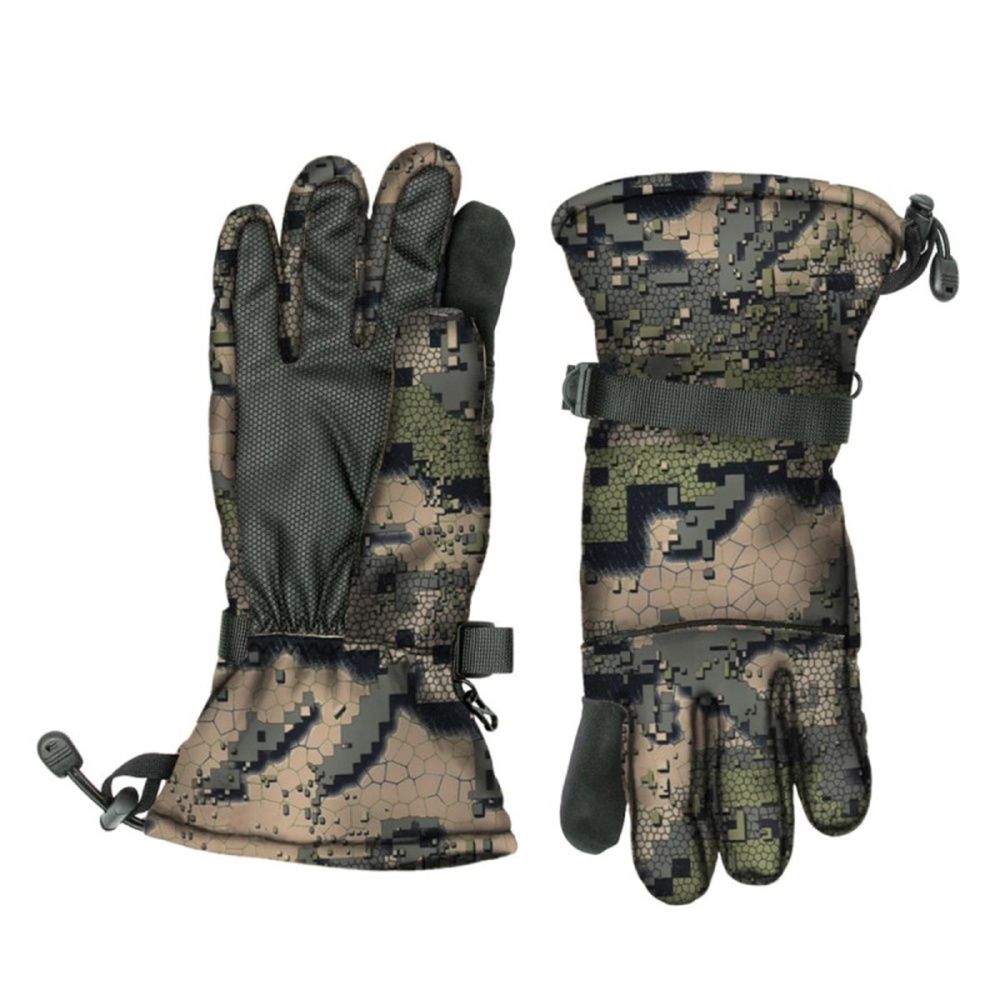 Удлиненный манжет перекрывает рукав куртки и препятствует задуванию, а прочная утяжка на запястье со стропой и фиксатором помогает точно подогнать посадку и удерживает тепло. В сравнении с базовыми моделями без мембраны и коротким манжетом эта версия лучше защищает от промокания и продувания, повышая комфорт в снегу, сырости и ветре.