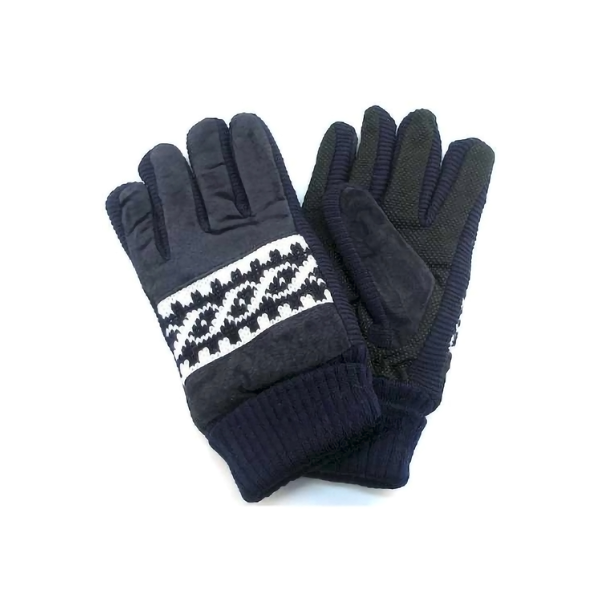Перчатки вязаные (мех, прорезиненная накладка, замшевая вставка, манжета) синие