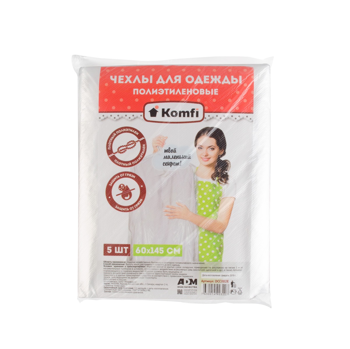 Чехлы для одежды Komfi 60х145см (5шт) (DCC002E)