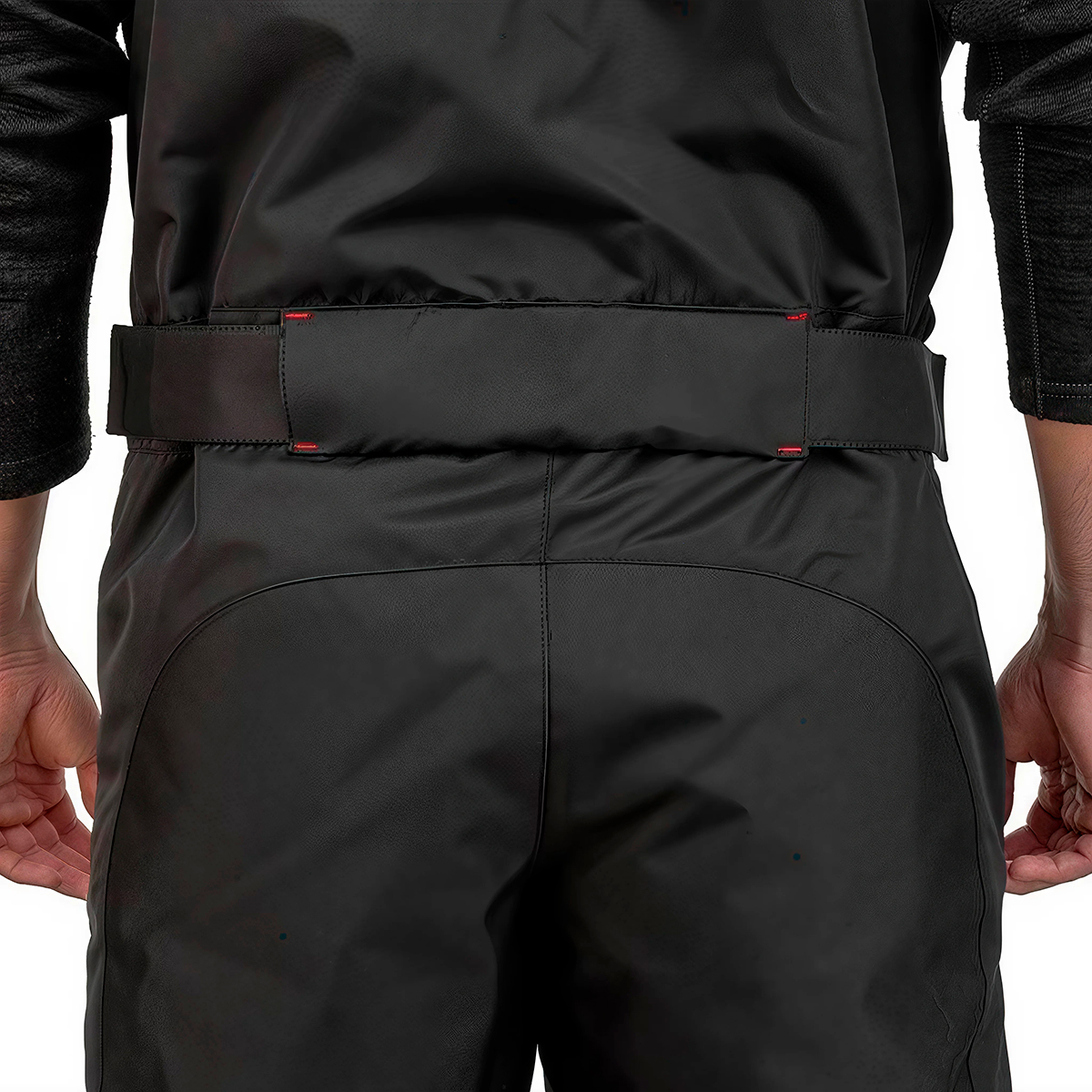 В целях дополнительной защиты от влаги в местах наибольшего намокания на костюме проклеены швы.