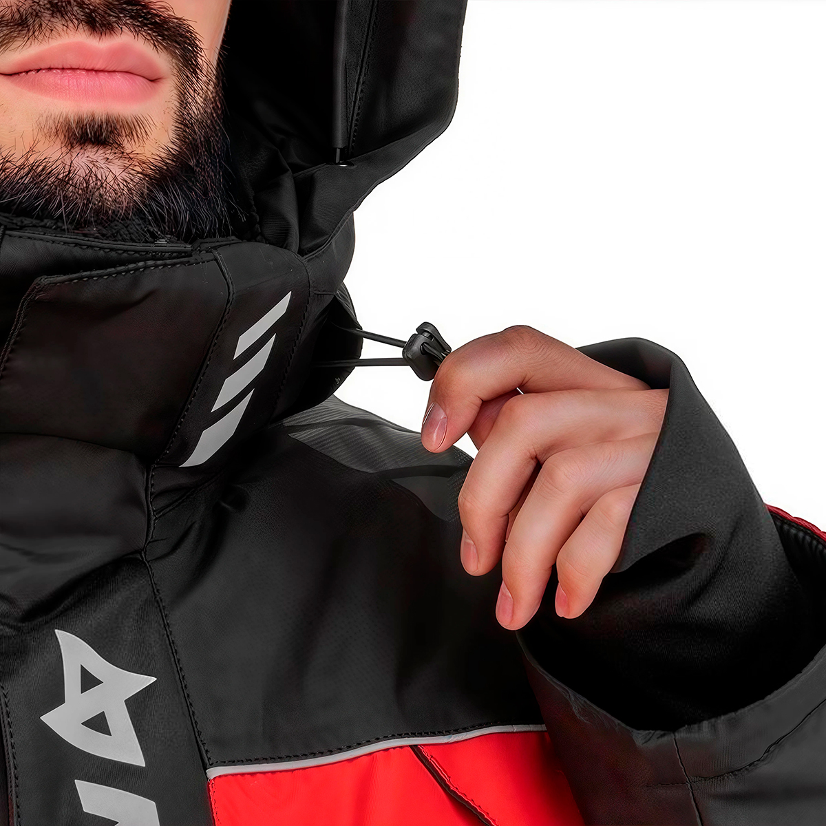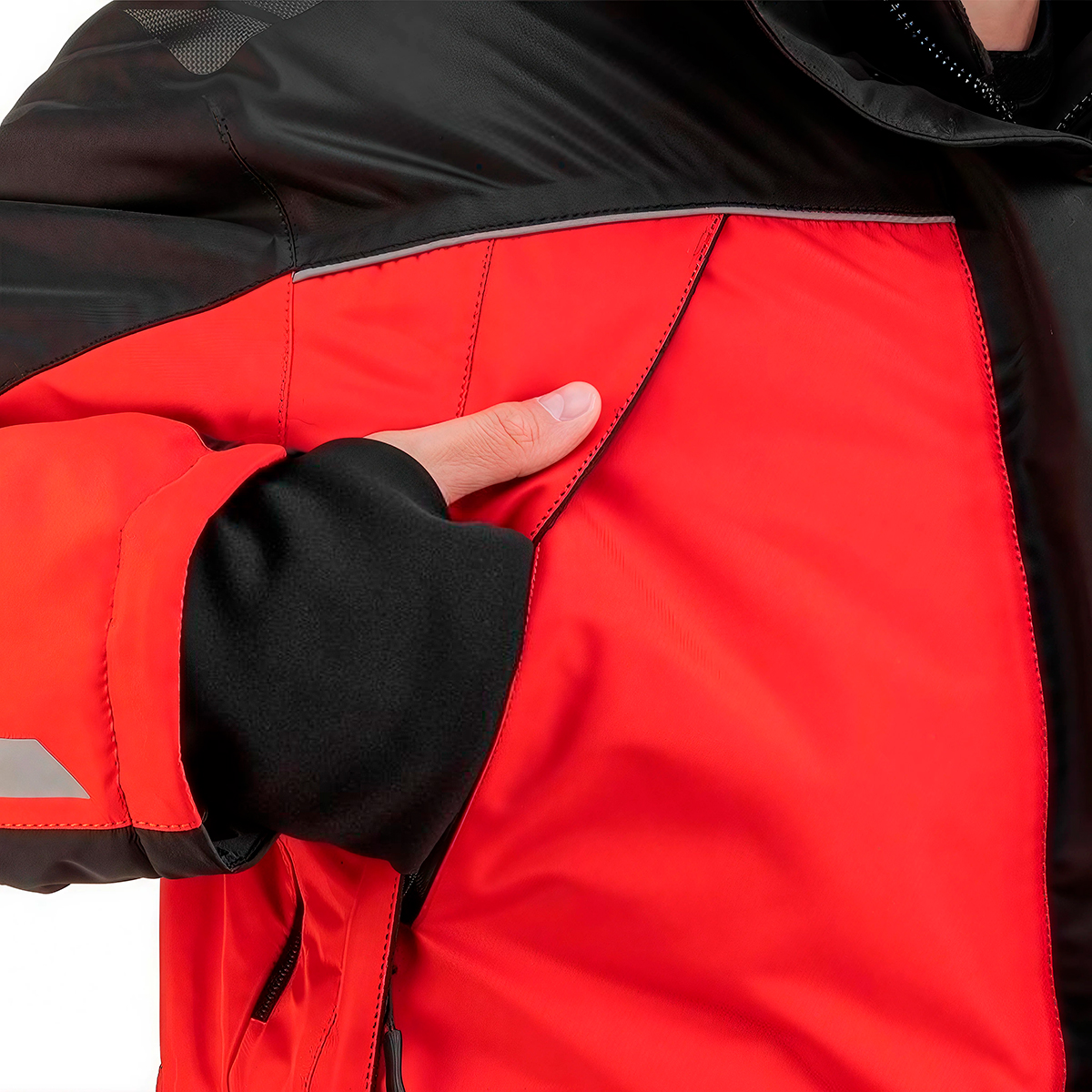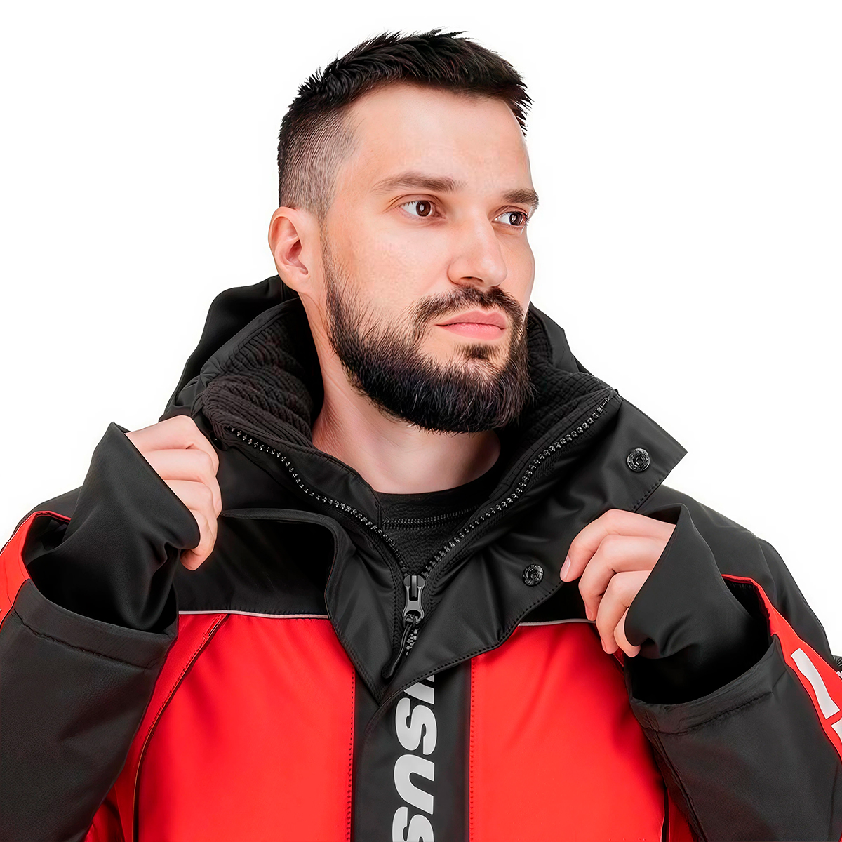 Костюм состоит из куртки и полукомбинезона, изготовлен из высокотехнологичных материалов с применением технологии проклеенных швов и предназначен для использования в сложных погодных условиях (мокрый снег, ветер, сильный мороз, метель). Яркие цвета (красный/черный) в сочетании со светоотражающими элементами способствуют лучшей заметности на льду и снегу, а также в других условиях плохой видимости, тем самым обеспечивая безопасность его обладателю.