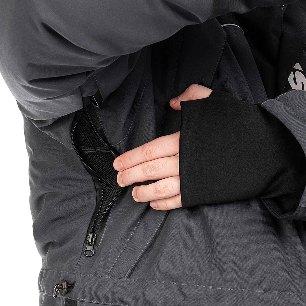 Максимальную функциональность костюму придает продуманная система размещения карманов. Предусмотрены как внутренние, куда можно безопасно поместить телефон или документы, так и внешние, которые отлично подойдут для рыболовных мелочей.