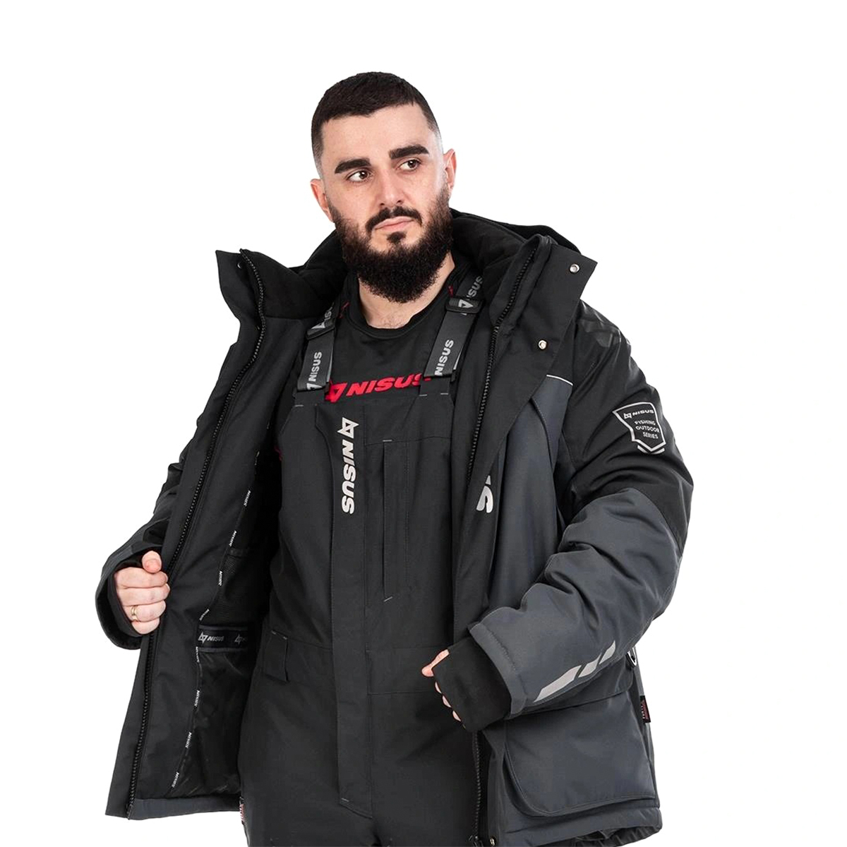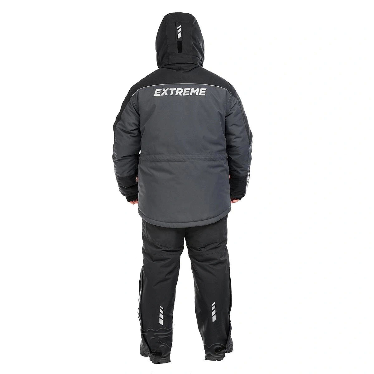 Удлиненная модель куртки для сохранения тепла, с дополнительно удлиненной спинкой для защиты от ветра зоны поясницы в положении сидя. Регулируемый по объему в двух плоскостях съёмный капюшон. Удобный козырек на капюшоне не ограничивает обзор и надежно защитит от попадания мокрого снега или стекания воды на лицо при непогоде, создавая изолированную теплую зону перед лицом. Система регулировки капюшона дает возможность настроить его под любые условия ловли.
