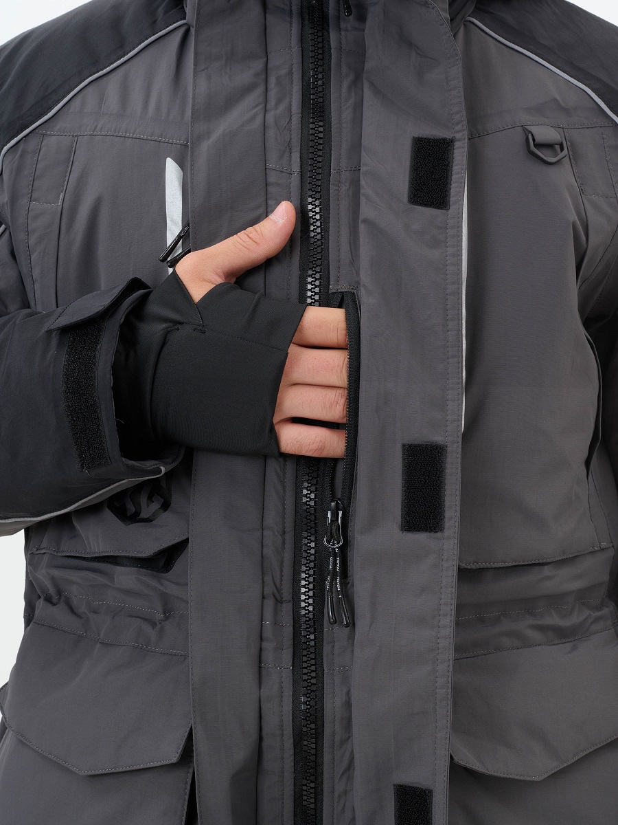 Износостойкая ткань Таслан - долговечный, устойчивый к истиранию и многократным изгибам мембранная ткань нового поколения с высокими показателями паропроницаемости и водостойкости (10000/10000). Сочетает в себе теплоизолирующие, ветро- и влагоустойчивые показатели и прочность наружного слоя. Внешняя поверхность блокирует ветер, а внутренний слой ткани защищает от избыточной влаги. Solid Pro -45 ПК предназначен для зимней рыбалки, поездок на снегоходе, а так же работы в самых холодных погодных условиях. Костюм включает в себя только самые необходимые функции для безопасной рыбалки в зимний период. Полукомбинезон исключает продувания в ветренную погоду. На куртке имеется большое кол-во карманов для размещения всех необходимых принадлежностей, что повышает его функциональность при занятиях любимым увлечением. Светоотражающие элементы сделают Ваше занятие более безопасным. Съемные подтяжки.