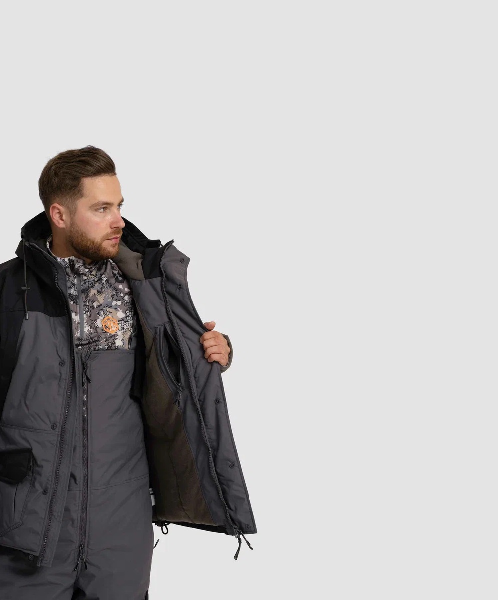 Сочетает в себе теплоизолирующие, ветро- и влагоустойчивые показатели и прочность наружного слоя. Внешняя поверхность блокирует ветер, а внутренний слой ткани защищает от избыточной влаги. Костюм "Strong" разрабатывался для рыбалки и активного отдыха. Использование современных материалов при производстве делает костюм универсальным. Костюм с полукомбинезоном обеспечит максимум комфорта при любых погодных условиях. Большое количество карманов позволит разместить все необходимые вещи. Съемные подтяжки.