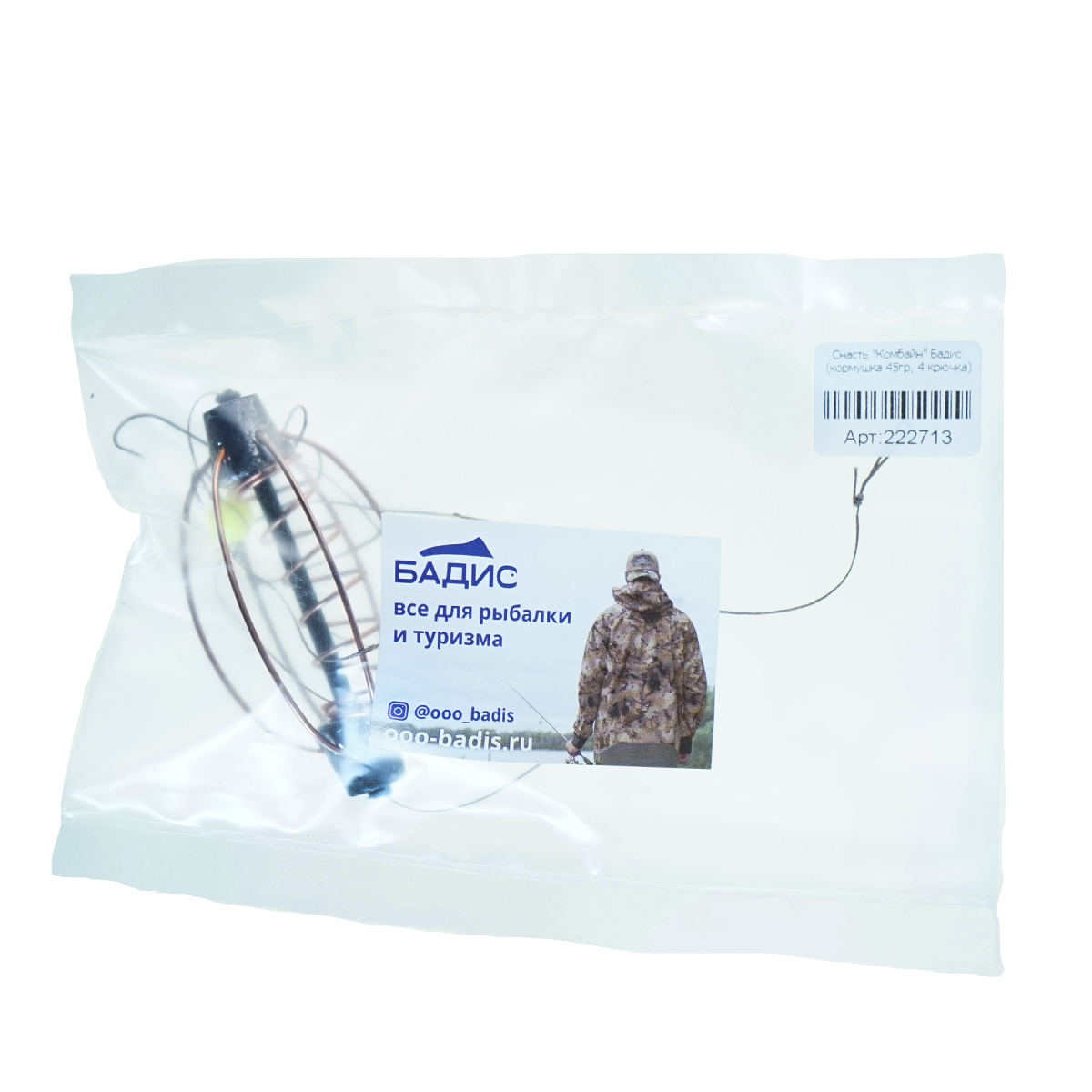 Снасть Комбайн Бадис (кормушка 45гр с 4-мя крючками)