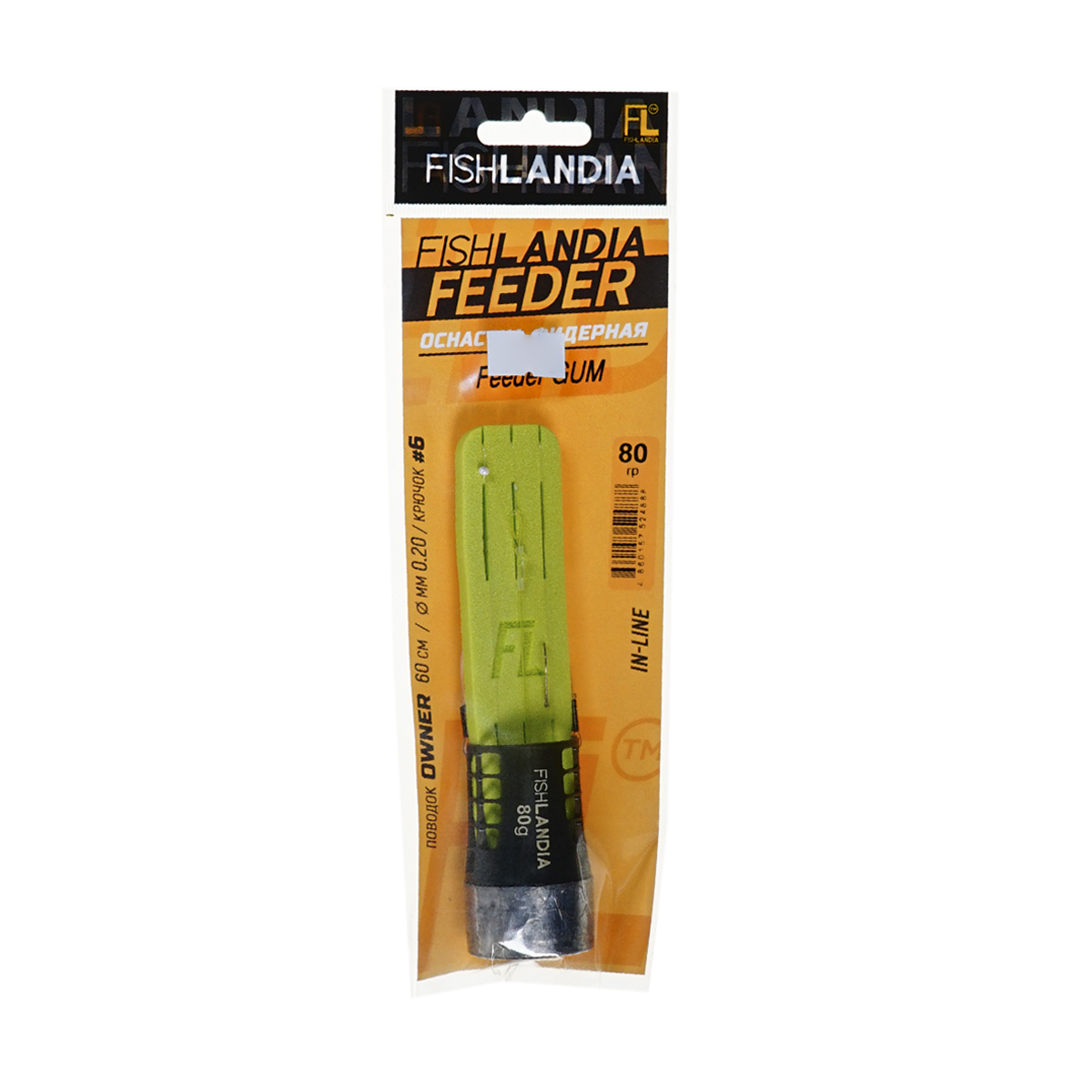 Оснастка фидерная Fishlandia In-Line Feeder Gum 80гр (поводок Owner 60см, d0,2мм, крючок №6)