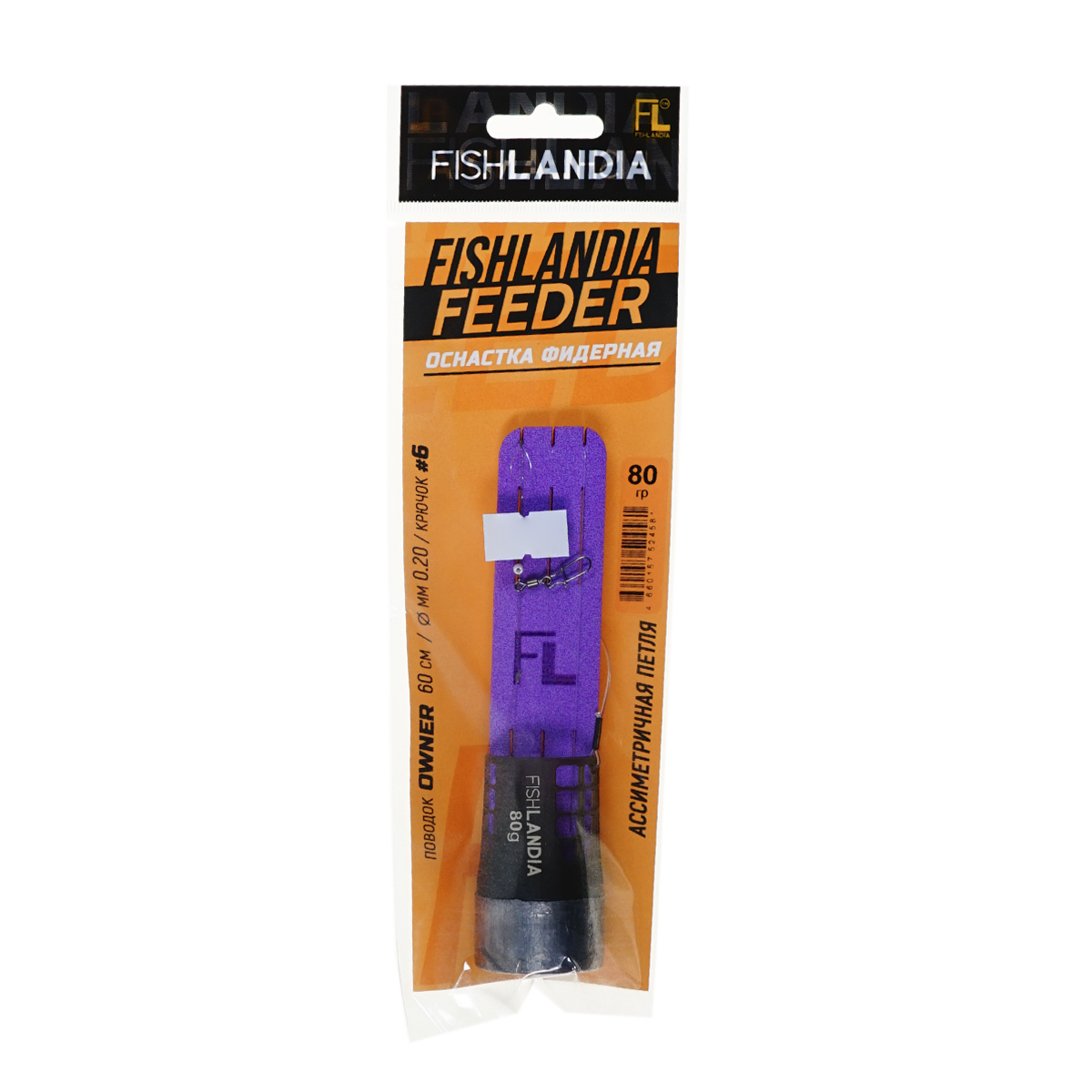 Оснастка фидерная Fishlandia Ассиметричная петля 80гр (поводок Owner 60см, d0,2мм, крючок №6)