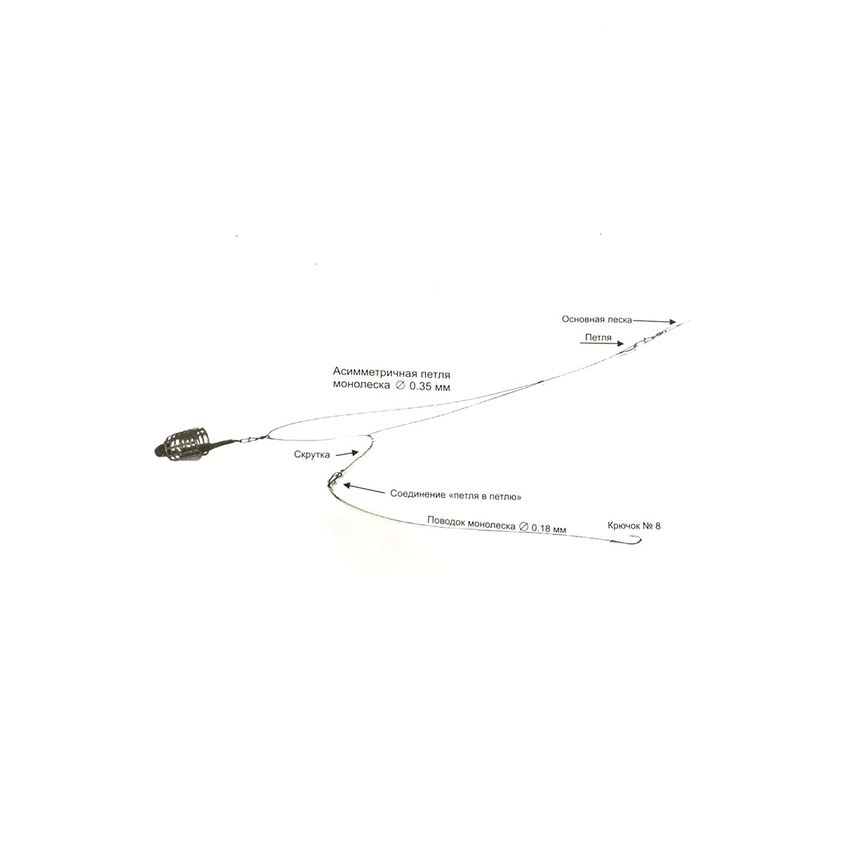 В комплекте: кормушка Сталкер, асимметричная петля, поводок, крючок, мотовило.