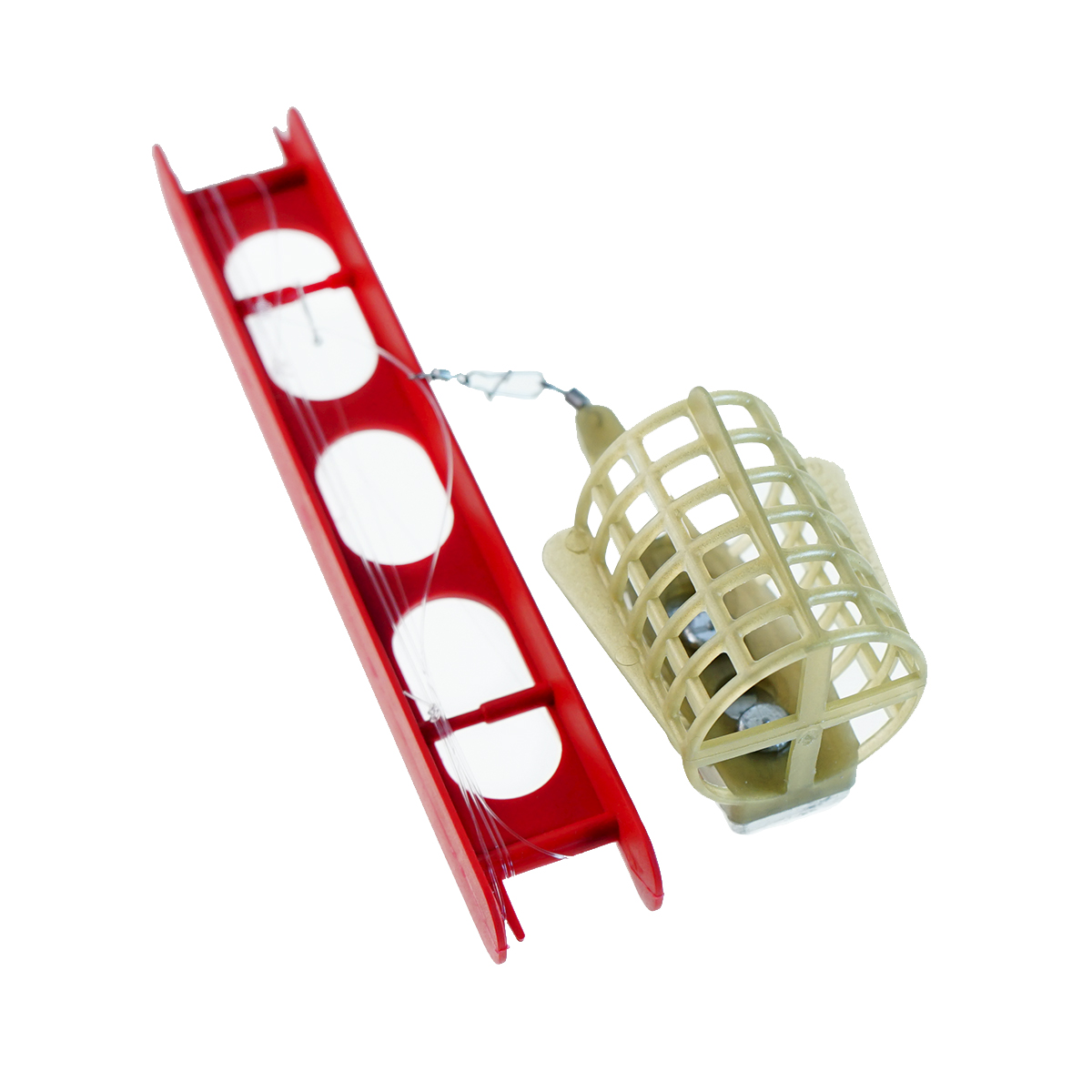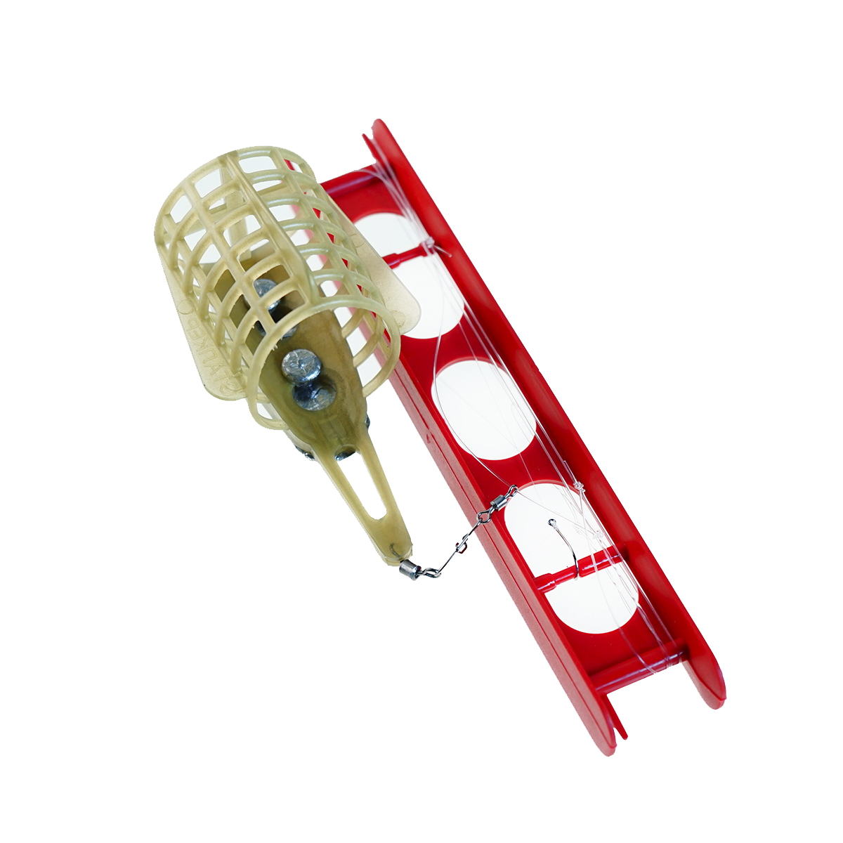В комплекте: кормушка Сталкер, асимметричная петля, поводок, крючок, мотовило.