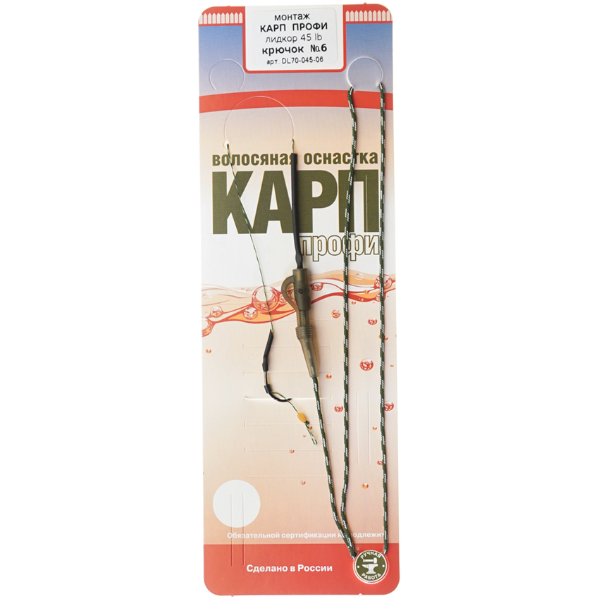 Монтаж волосяной Карп Профи Лидкор (клипса 110гр, крючок №6, тест 10кг)