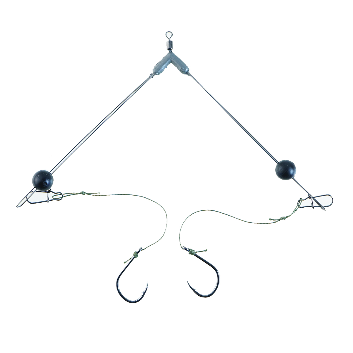 Комплектуется двумя поводками из мягкой плетенки с качественными большими крючками Iseama №15. Большой размер крючков снижает количество сходов при вываживании.