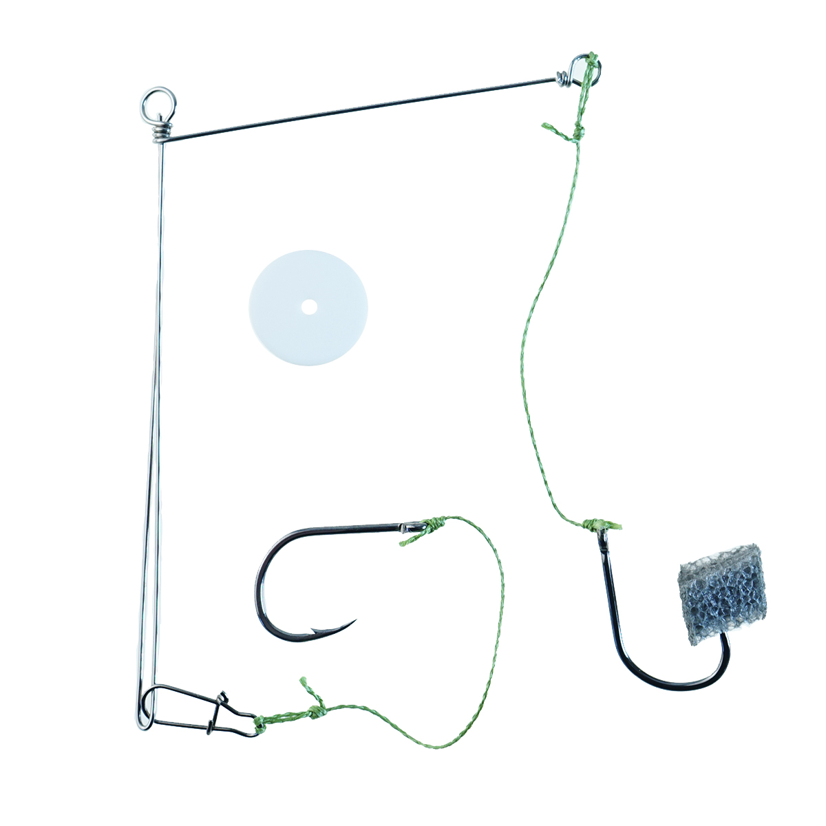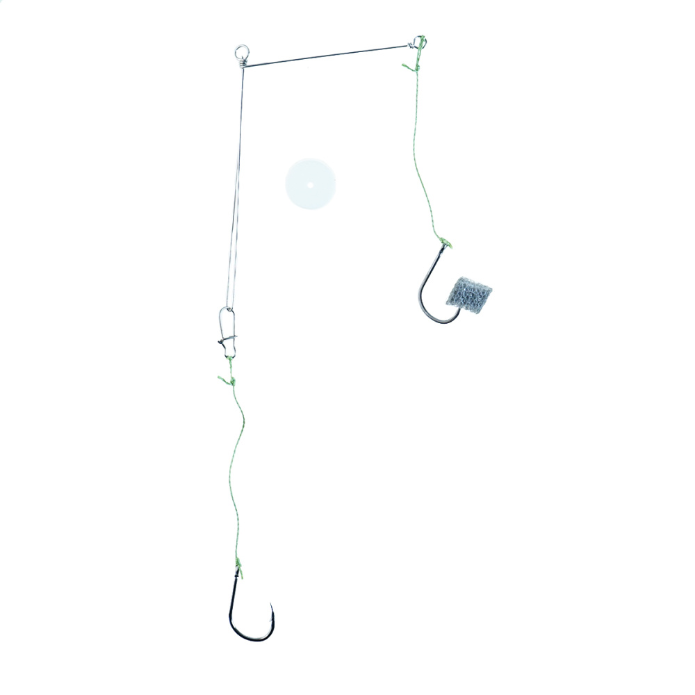 Комплектуется двумя поводками из мягкой плетенки с качественными большими крючками Iseama №15. Большой размер крючков снижает количество сходов при вываживании.