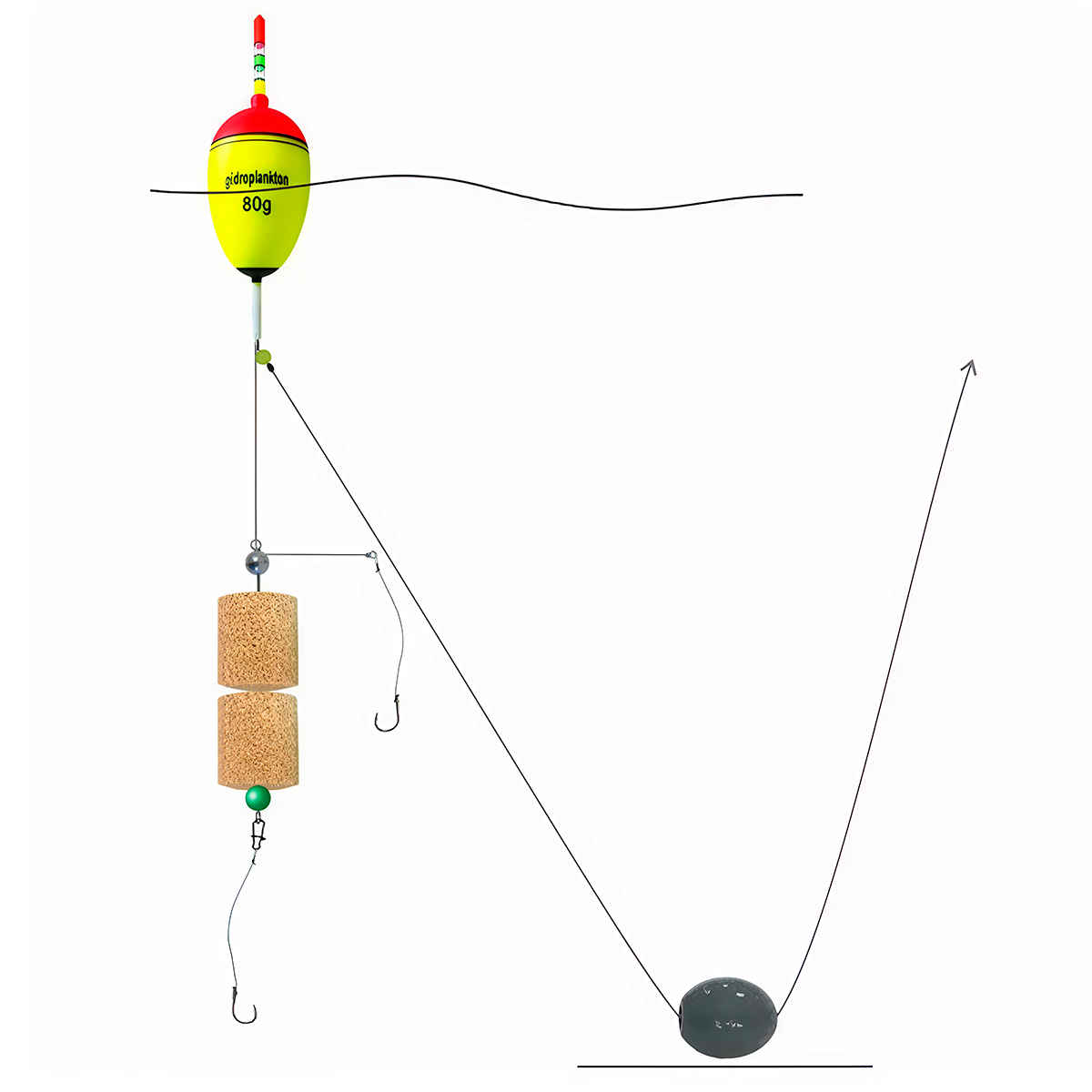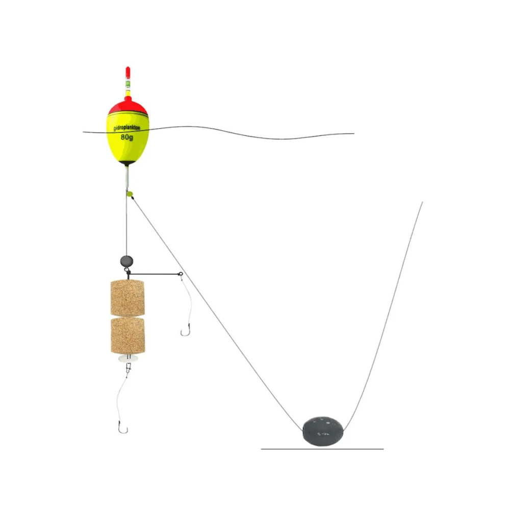 Комплектуется EVA-поплавком с возможностью установки светлячка, скользящим грузилом весом 40г, Г-образной оснасткой для двух таблеток технопланктона с двумя поводками из мягкой плетенки, качественными большими крючками, стопорками, бусинами, грузиком для подгрузки поплавка.
