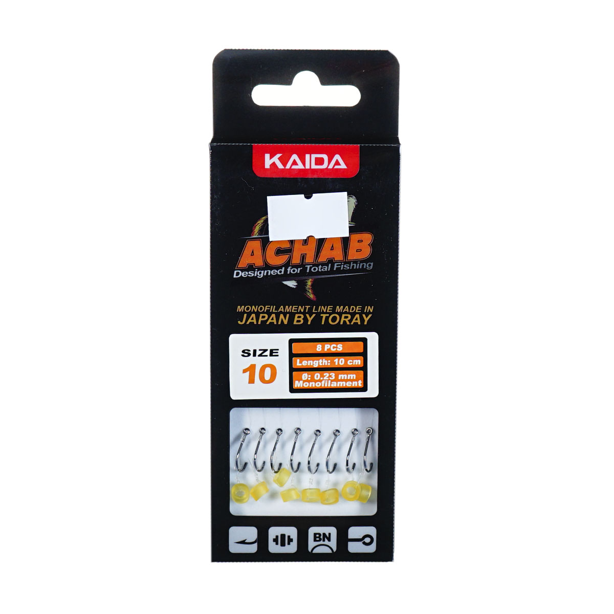 Короткая длина 10 см помогает быстрее самофиксировать крючок при поклевке и держать насадку в зоне прикормки, а монофильная леска 0,23 мм добавляет жесткости для контроля рыбы при вываживании. Размер крючка №10 оптимален под мини‑бойлы, кукурузу и животные насадки на среднюю и крупную рыбу.