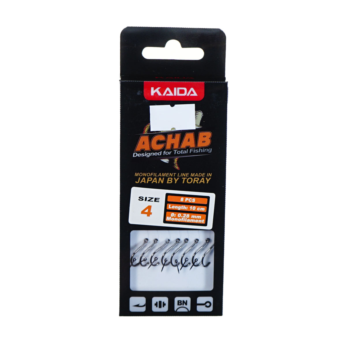 Длина 10 см — оптимальна для методной кормушки; диаметр лески 0,28 мм даёт запас прочности и устойчивость к истиранию; крючок №4 подходит для объёмных насадок (бойл, пеллет, кукуруза). В упаковке 8 штук — удобный запас на рыбалку и быстрые замены без перевязок
