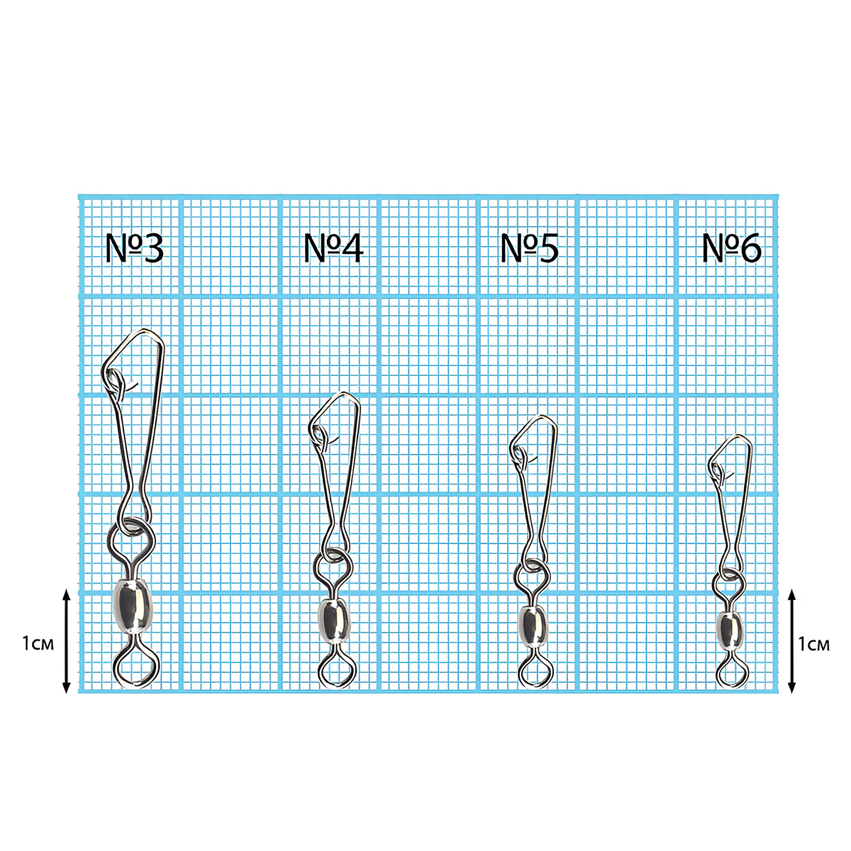 Классический карабин с вертлюжком. Этот элемент надежно соединит нужные детали оснастки, не нарушая их подвижности, а замена приманки не составит труда. Линейка объединяет модели разных размеров и вы с легкостью подобреете вариант под конкретные условия ловли и общий тест снасти.