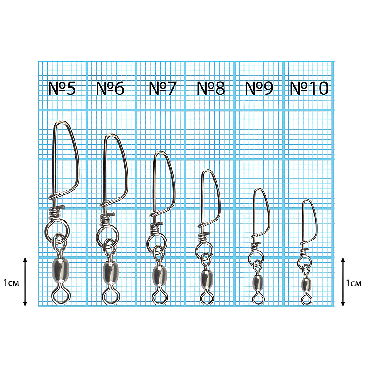 Классический карабин с вертлюжком. Этот элемент надежно соединит нужные детали оснастки, не нарушая их подвижности, а замена приманки не составит труда. Линейка объединяет модели разных размеров и вы с легкостью подобреете вариант под конкретные условия ловли и общий тест снасти.