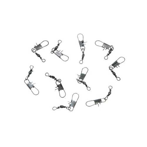 Вертлюжки с карабинами «СР» Barrel swivel w/interlock snap производится на специализированном корейском заводе. Благодаря этому, все изделия данного производителя соответствуют рыболовным параметрам, указанным на упаковке. В комплект входит 10 изделий.