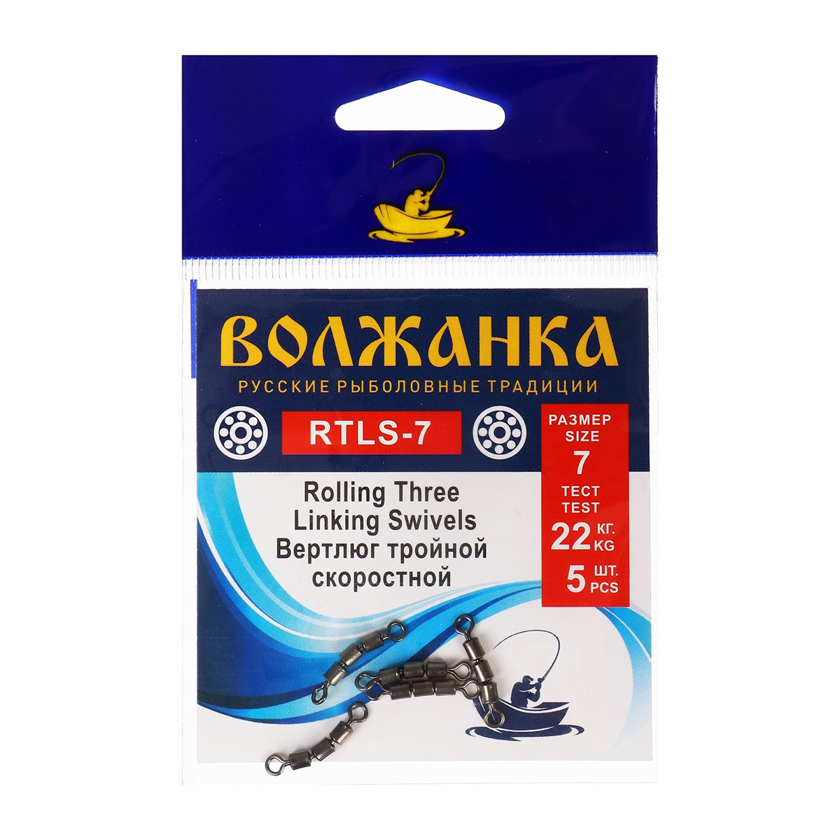 Вертлюги Волжанка Rolling Three Linking Swivels тройные, скоростные №7 тест 22кг (5шт)