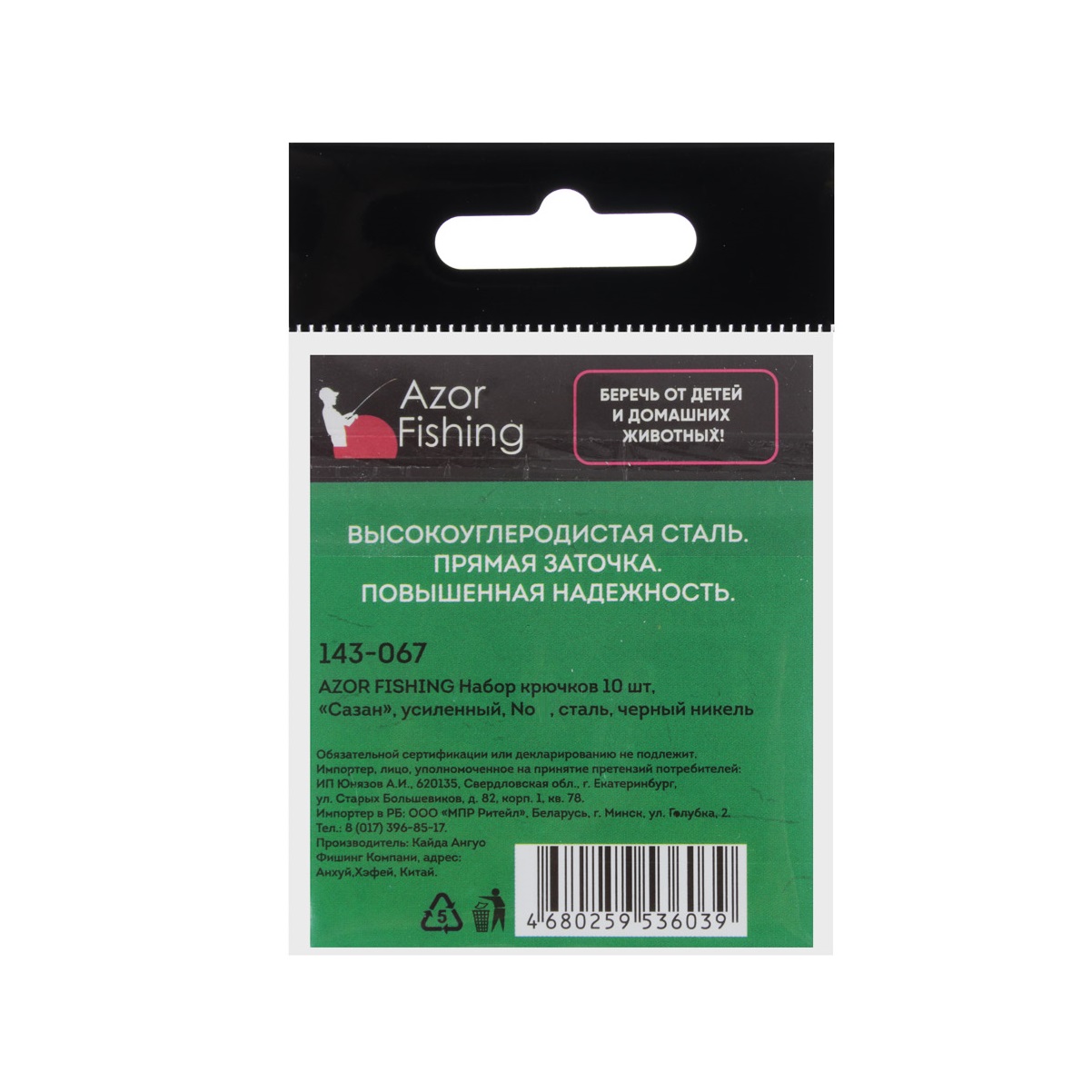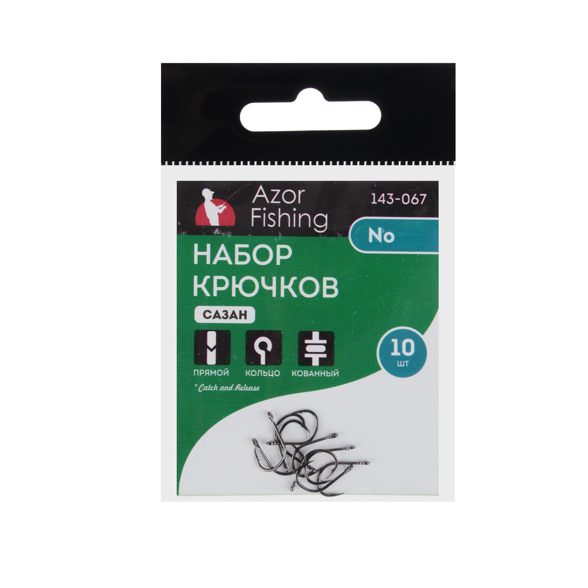 Крючки одинарные Azor Fishing №2 сазан, усиленный, высокоуглеродистая сталь (10шт) черные, никелевые