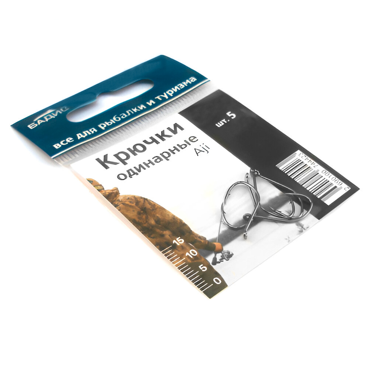 Крючки одинарные Бадис Aji №5 (5шт) черные, никелевые