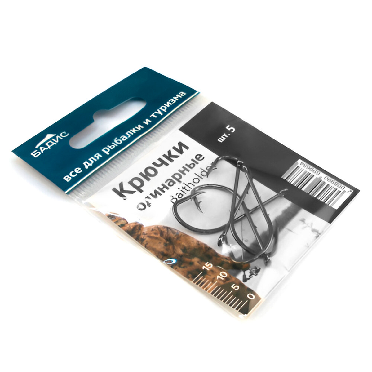 Крючки одинарные Бадис Baitholder №8 (5шт) черные, никелевые