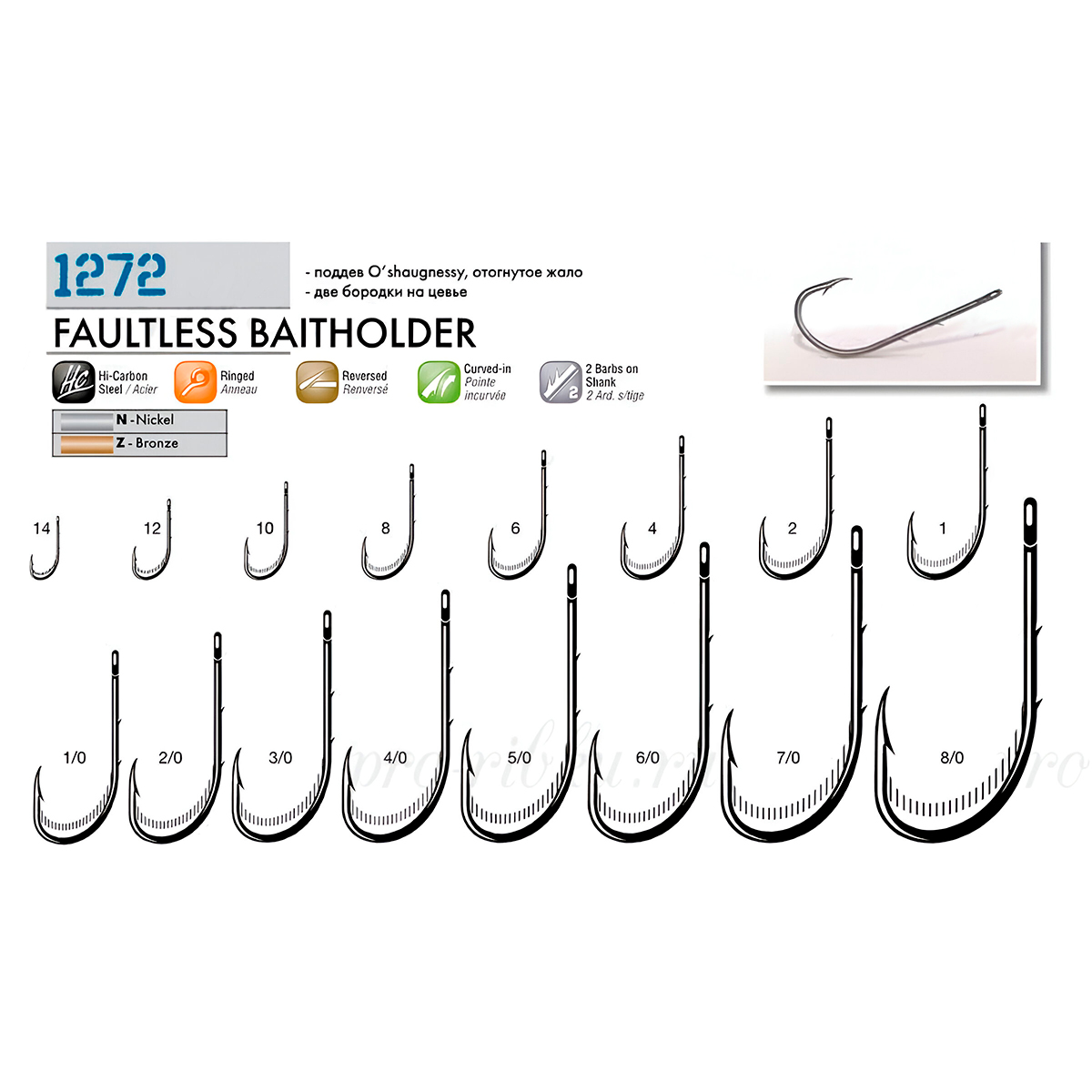 Крючки одинарные Cannelle 1272 N №14 две бородки на цевье, отогнутое жало (10шт) никелевые