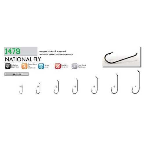 Крючки одинарные Cannelle 1479 N №18 удлиненное цевье, тонкая проволока, кованые, мушечный (10шт) никелевые