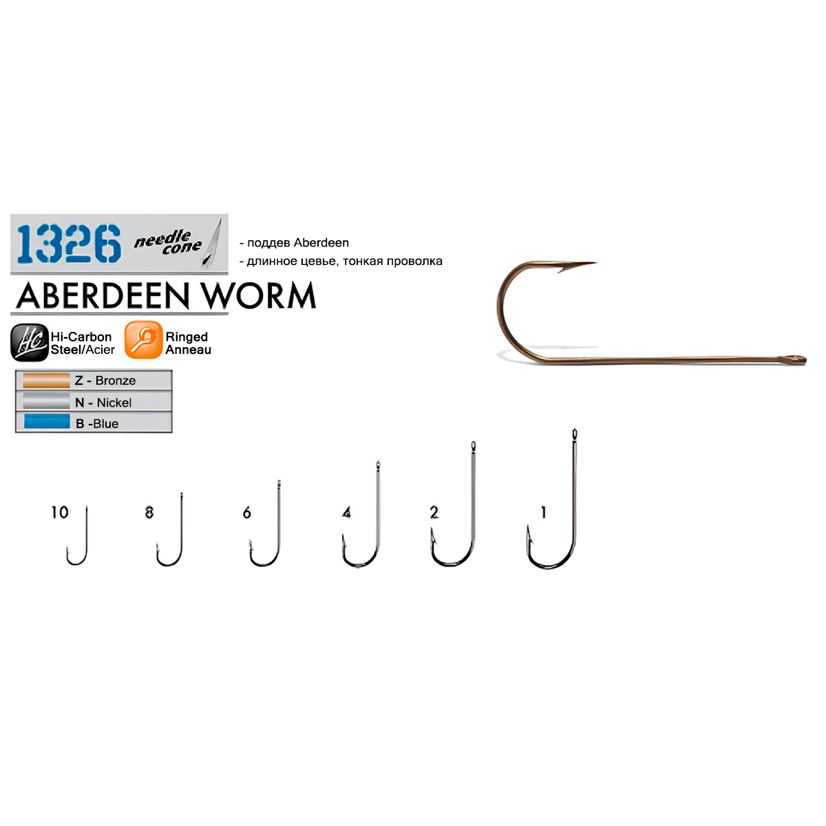 Крючки одинарные Cannelle 1326 N №12 удлиненное цевье, тонкая проволока (10шт) никелевые