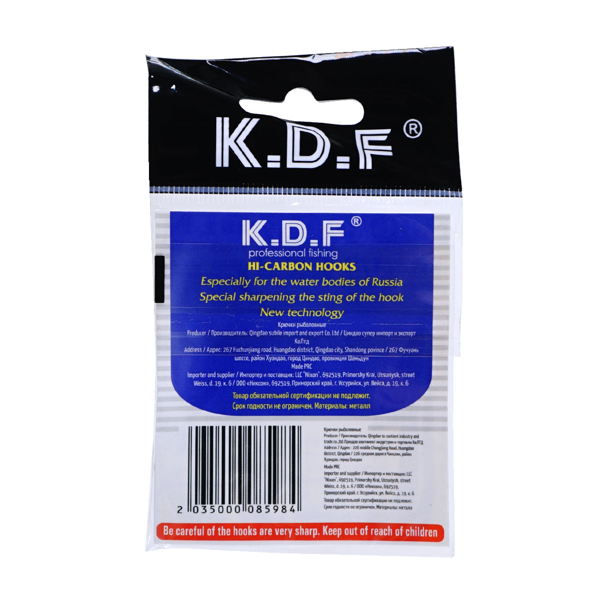 Крючки одинарные живцовые KDF №1/0 (10шт)