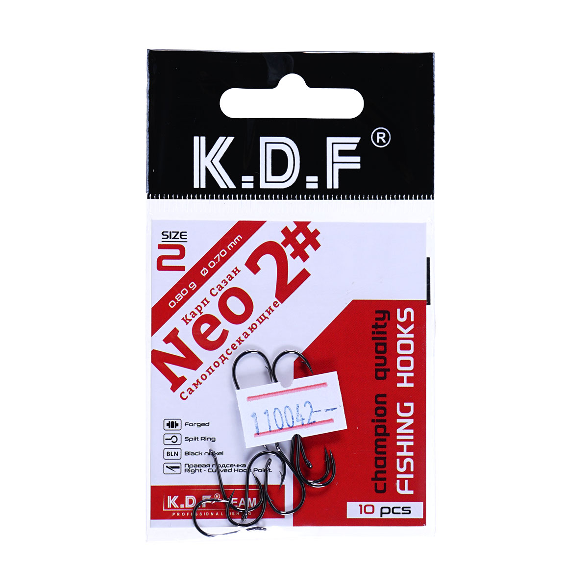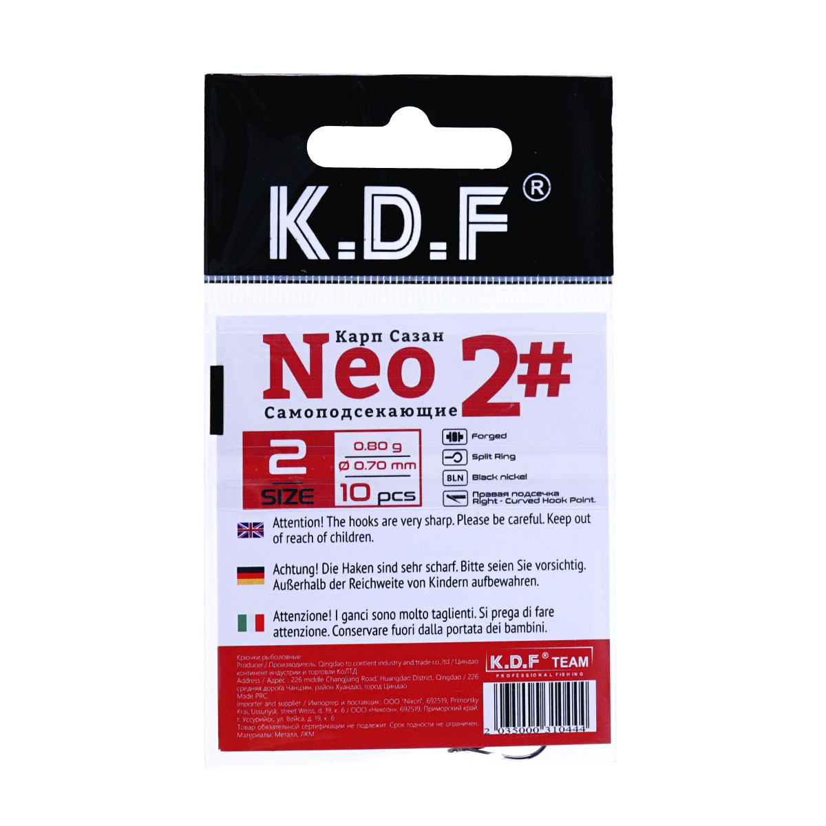 Крючки одинарные самоподсекающие KDF Карп Сазан Neo №2 (10шт)