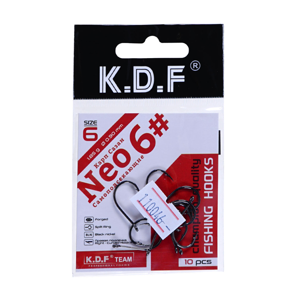 Крючки одинарные самоподсекающие KDF Карп Сазан Neo №4 (10шт)