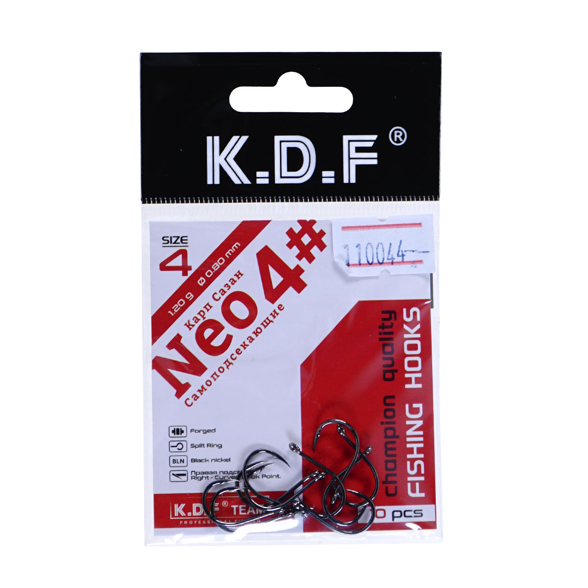 Крючки одинарные самоподсекающие KDF Карп Сазан Neo №4 (10шт)