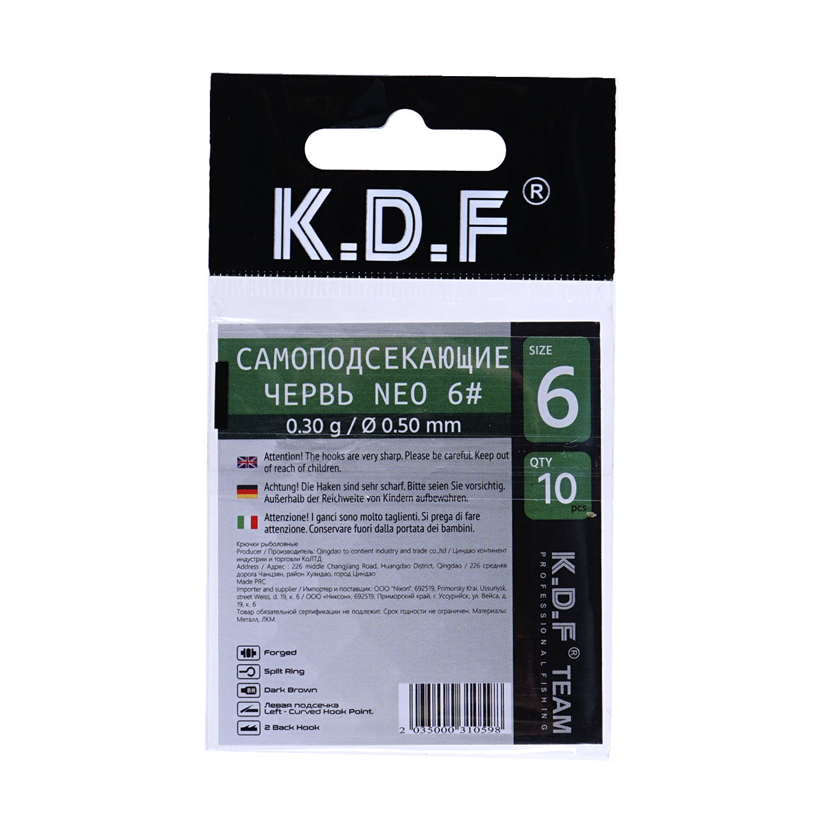 Крючки одинарные самоподсекающие KDF Червь Neo №6 (10шт)