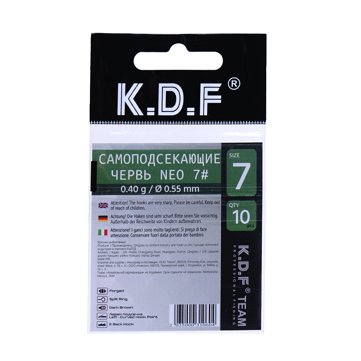 Крючки одинарные самоподсекающие KDF Червь Neo №7 (10шт)